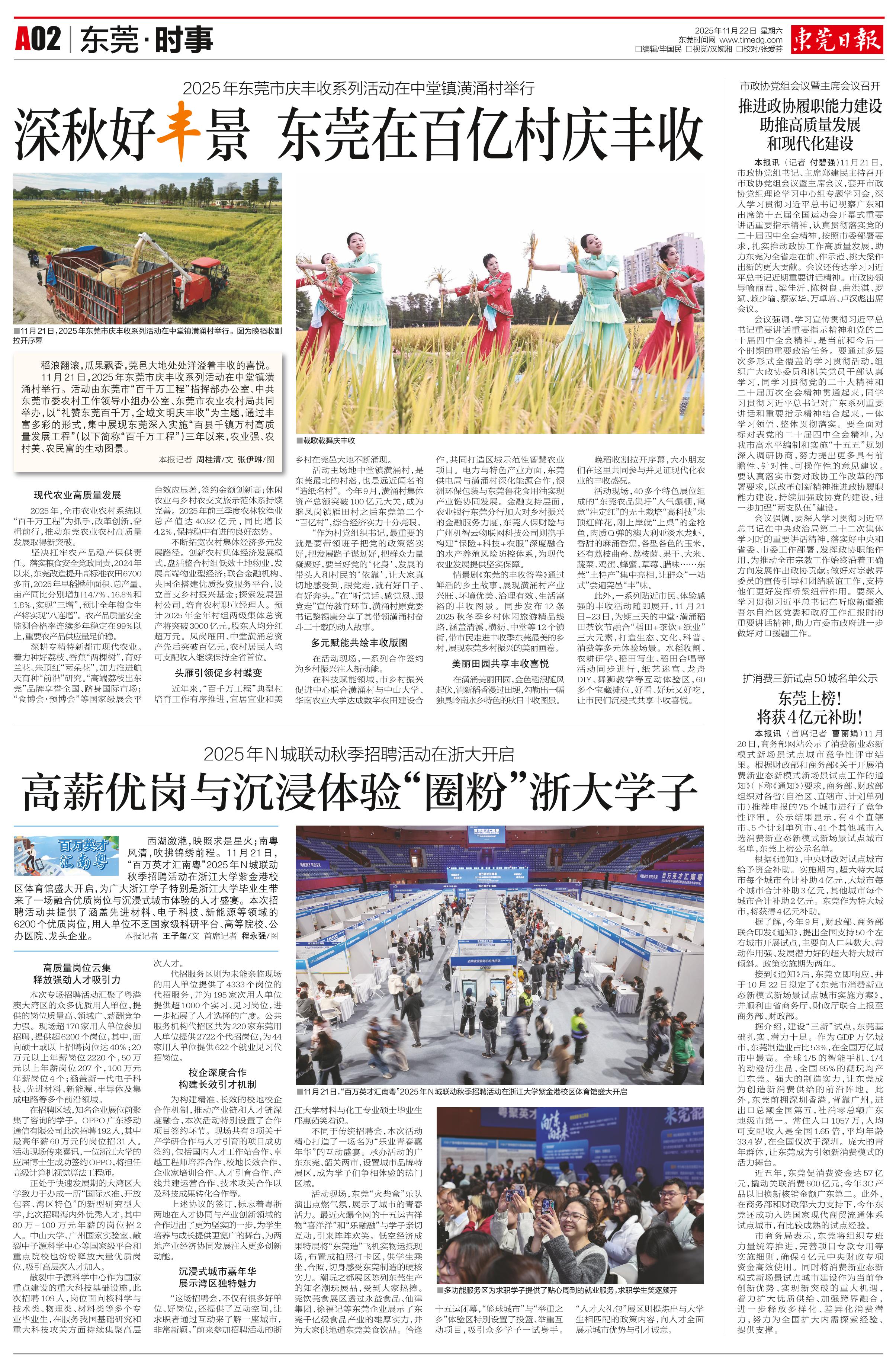 <div style='font-size: 16px!important;line-height: 28px!important;text-align: justify;color: #777!important;'>扩消费三新试点50城名单公示</div><div style='font-size: 22px!important;line-height: 34px!important;text-align: justify!important;color: #000!important'>东莞上榜!将获4亿元补助!</div><div style='font-size: 14px!important;line-height: 22px!important;text-align: left!important;color: #777!important;margin-top: 20px;'>东莞日报  首席记者 曹丽娟  2025-11-22</div><div><img id='paperImg' style='max-width: 100%;height: auto' src='//img.founderfx.cn/epaper/202511/22/53e456c8b89b481cb61c684bd56f7683/2.jpg' alt='' class='page-img'/></div><p> 本报讯 11月20日,商务部网站公示了消费新业态新模式新场景试点城市竞争性评审结果。根据财政部和商务部《关于开展消费新业态新模式新场景试点工作的通知》(下称《通知》)要求,商务部、财政部组织对各省(自治区、直辖市、计划单列市)推荐申报的75个城市进行了竞争性评审。公示结果显示,有4个直辖市、5个计划单列市、41个其他城市入选消费新业态新模式新场景试点城市名单,东莞上榜公示名单。</p><p> 根据《通知》,中央财政对试点城市给予资金补助。实施期内,超大特大城市每个城市合计补助4亿元,大城市每个城市合计补助3亿元,其他城市每个城市合计补助2亿元。东莞作为特大城市,将获得4亿元补助。</p><p> 据了解,今年9月,财政部、商务部联合印发《通知》,提出全国支持50个左右城市开展试点,主要向人口基数大、带动作用强、发展潜力好的超大特大城市倾斜。政策实施期为两年。</p><p> 接到《通知》后,东莞立即响应,并于10月22日拟定了《东莞市消费新业态新模式新场景试点城市实施方案》,并顺利由省商务厅、财政厅联合上报至商务部、财政部。</p><p> 据介绍,建设“三新”试点,东莞基础扎实、潜力十足。作为GDP万亿城市,东莞制造业占比53%,在全国万亿城市中最高。全球1/5的智能手机、1/4的动漫衍生品、全国85%的潮玩均产自东莞。强大的制造实力,让东莞成为创造新消费供给的前沿阵地。此外,东莞前拥深圳香港,背靠广州,进出口总额全国第五,社消零总额广东地级市第一。常住人口1057万,人均可支配收入是全国1.65倍,平均年龄33.4岁,在全国仅次于深圳。庞大的青年群体,让东莞成为引领新消费模式的活力舞台。</p><p> 近五年,东莞促消费资金达57亿元,撬动关联消费600亿元,今年3C产品以旧换新核销金额广东第二。此外,在商务部和财政部大力支持下,今年东莞还成功入选国家现代商贸流通体系试点城市,有比较成熟的试点经验。</p><p> 市商务局表示,东莞将组织专班力量统筹推进,完善项目专款专用等实施细则,确保4亿元中央财政专项资金高效使用。同时将消费新业态新模式新场景试点城市建设作为当前争创新优势、实现新突破的重大机遇,着力扩大优质供给、加强跨界融合,进一步释放多样化、差异化消费潜力,努力为全国扩大内需探索经验、提供支撑。</p>