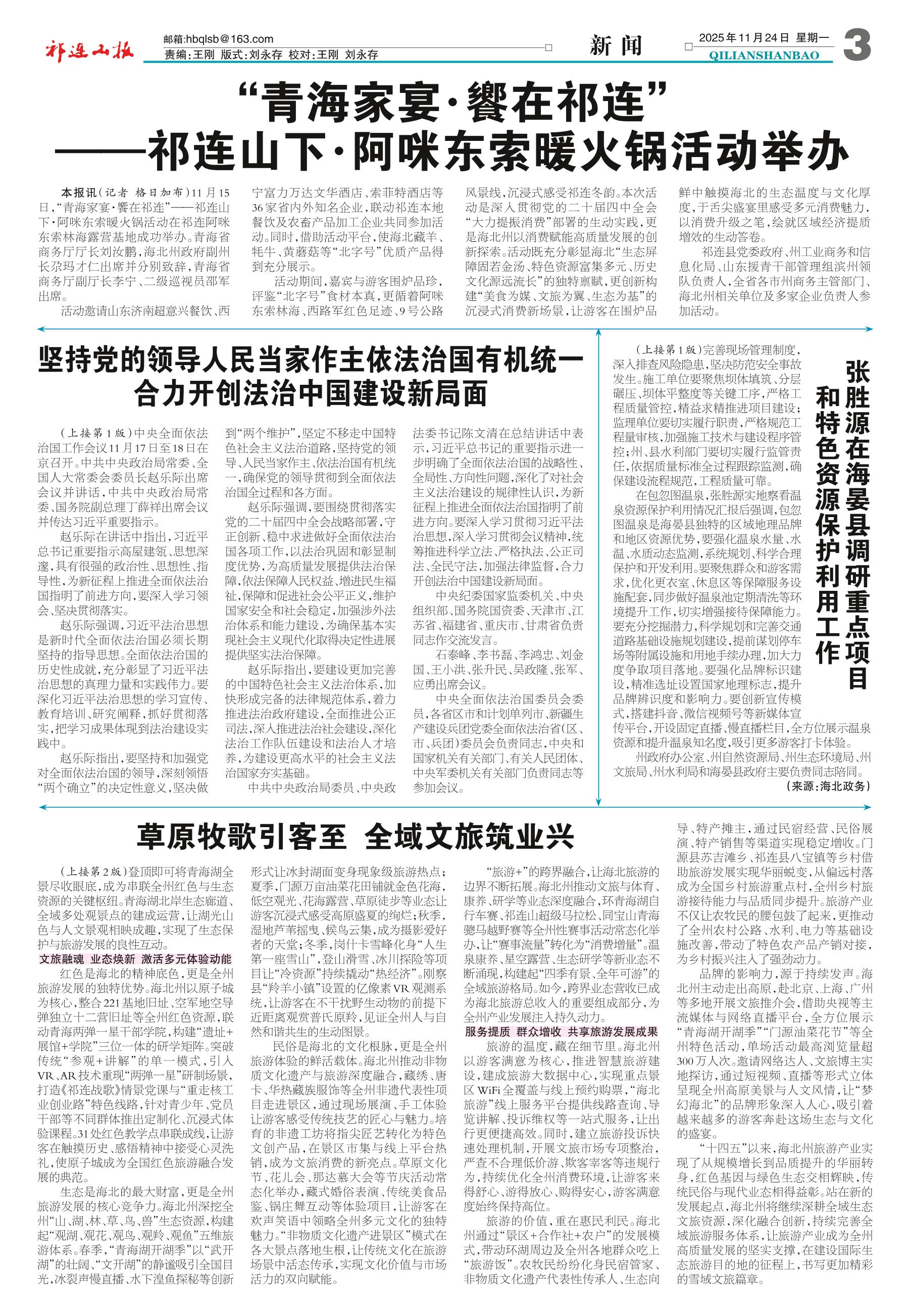 <div style='font-size: 22px!important;line-height: 34px!important;text-align: justify!important;color: #000!important'>草原牧歌引客至 全域文旅筑业兴</div><div style='font-size: 14px!important;line-height: 22px!important;text-align: left!important;color: #777!important;margin-top: 20px;'>祁连山报  2025-11-24</div><div><img id='paperImg' style='max-width: 100%;height: auto' src='//img.founderfx.cn/epaper/202511/25/bc30c7a505864de0ae40f25716139f9e/3.jpg' alt='' class='page-img'/></div><p> (上接第2版)登顶即可将青海湖全景尽收眼底,成为串联全州红色与生态资源的关键枢纽。青海湖北岸生态廊道、全域多处观景点的建成运营,让湖光山色与人文景观相映成趣,实现了生态保护与旅游发展的良性互动。</p><p> 文旅融魂 业态焕新 激活多元体验动能</p><p> 红色是海北的精神底色,更是全州旅游发展的独特优势。海北州以原子城为核心,整合221基地旧址、空军地空导弹独立十二营旧址等全州红色资源,联动青海两弹一星干部学院,构建“遗址+展馆+学院”三位一体的研学矩阵。突破传统“参观+讲解”的单一模式,引入VR、AR技术重现“两弹一星”研制场景,打造《祁连战歌》情景党课与“重走核工业创业路”特色线路,针对青少年、党员干部等不同群体推出定制化、沉浸式体验课程。31处红色教学点串联成线,让游客在触摸历史、感悟精神中接受心灵洗礼,使原子城成为全国红色旅游融合发展的典范。</p><p> 生态是海北的最大财富,更是全州旅游发展的核心竞争力。海北州深挖全州“山、湖、林、草、鸟、兽”生态资源,构建起“观湖、观花、观鸟、观羚、观鱼”五维旅游体系。春季,“青海湖开湖季”以“武开湖”的壮阔、“文开湖”的静谧吸引全国目光,冰裂声慢直播、水下湟鱼探秘等创新形式让冰封湖面变身现象级旅游热点;夏季,门源万亩油菜花田铺就金色花海,低空观光、花海露营、草原徒步等业态让游客沉浸式感受高原盛夏的绚烂;秋季,湿地芦苇摇曳、候鸟云集,成为摄影爱好者的天堂;冬季,岗什卡雪峰化身“人生第一座雪山”,登山滑雪、冰川探险等项目让“冷资源”持续撬动“热经济”。刚察县“羚羊小镇”设置的亿像素VR观测系统,让游客在不干扰野生动物的前提下近距离观赏普氏原羚,见证全州人与自然和谐共生的生动图景。</p><p> 民俗是海北的文化根脉,更是全州旅游体验的鲜活载体。海北州推动非物质文化遗产与旅游深度融合,藏绣、唐卡、华热藏族服饰等全州非遗代表性项目走进景区,通过现场展演、手工体验让游客感受传统技艺的匠心与魅力。培育的非遗工坊将指尖匠艺转化为特色文创产品,在景区市集与线上平台热销,成为文旅消费的新亮点。草原文化节、花儿会、那达慕大会等节庆活动常态化举办,藏式婚俗表演、传统美食品鉴、锅庄舞互动等体验项目,让游客在欢声笑语中领略全州多元文化的独特魅力。“非物质文化遗产进景区”模式在各大景点落地生根,让传统文化在旅游场景中活态传承,实现文化价值与市场活力的双向赋能。</p><p> “旅游+”的跨界融合,让海北旅游的边界不断拓展。海北州推动文旅与体育、康养、研学等业态深度融合,环青海湖自行车赛、祁连山超级马拉松、同宝山青海骢马越野赛等全州性赛事活动常态化举办,让“赛事流量”转化为“消费增量”。温泉康养、星空露营、生态研学等新业态不断涌现,构建起“四季有景、全年可游”的全域旅游格局。如今,跨界业态营收已成为海北旅游总收入的重要组成部分,为全州产业发展注入持久动力。</p><p> 服务提质 群众增收 共享旅游发展成果</p><p> 旅游的温度,藏在细节里。海北州以游客满意为核心,推进智慧旅游建设,建成旅游大数据中心,实现重点景区WiFi全覆盖与线上预约购票,“海北旅游”线上服务平台提供线路查询、导览讲解、投诉维权等一站式服务,让出行更便捷高效。同时,建立旅游投诉快速处理机制,开展文旅市场专项整治,严查不合理低价游、欺客宰客等违规行为,持续优化全州消费环境,让游客来得舒心、游得放心、购得安心,游客满意度始终保持高位。</p><p> 旅游的价值,重在惠民利民。海北州通过“景区+合作社+农户”的发展模式,带动环湖周边及全州各地群众吃上“旅游饭”。农牧民纷纷化身民宿管家、非物质文化遗产代表性传承人、生态向导、特产摊主,通过民宿经营、民俗展演、特产销售等渠道实现稳定增收。门源县苏吉滩乡、祁连县八宝镇等乡村借助旅游发展实现华丽蜕变,从偏远村落成为全国乡村旅游重点村,全州乡村旅游接待能力与品质同步提升。旅游产业不仅让农牧民的腰包鼓了起来,更推动了全州农村公路、水利、电力等基础设施改善,带动了特色农产品产销对接,为乡村振兴注入了强劲动力。</p><p> 品牌的影响力,源于持续发声。海北州主动走出高原,赴北京、上海、广州等多地开展文旅推介会,借助央视等主流媒体与网络直播平台,全方位展示“青海湖开湖季”“门源油菜花节”等全州特色活动,单场活动最高浏览量超300万人次。邀请网络达人、文旅博主实地探访,通过短视频、直播等形式立体呈现全州高原美景与人文风情,让“梦幻海北”的品牌形象深入人心,吸引着越来越多的游客奔赴这场生态与文化的盛宴。</p><p> “十四五”以来,海北州旅游产业实现了从规模增长到品质提升的华丽转身,红色基因与绿色生态交相