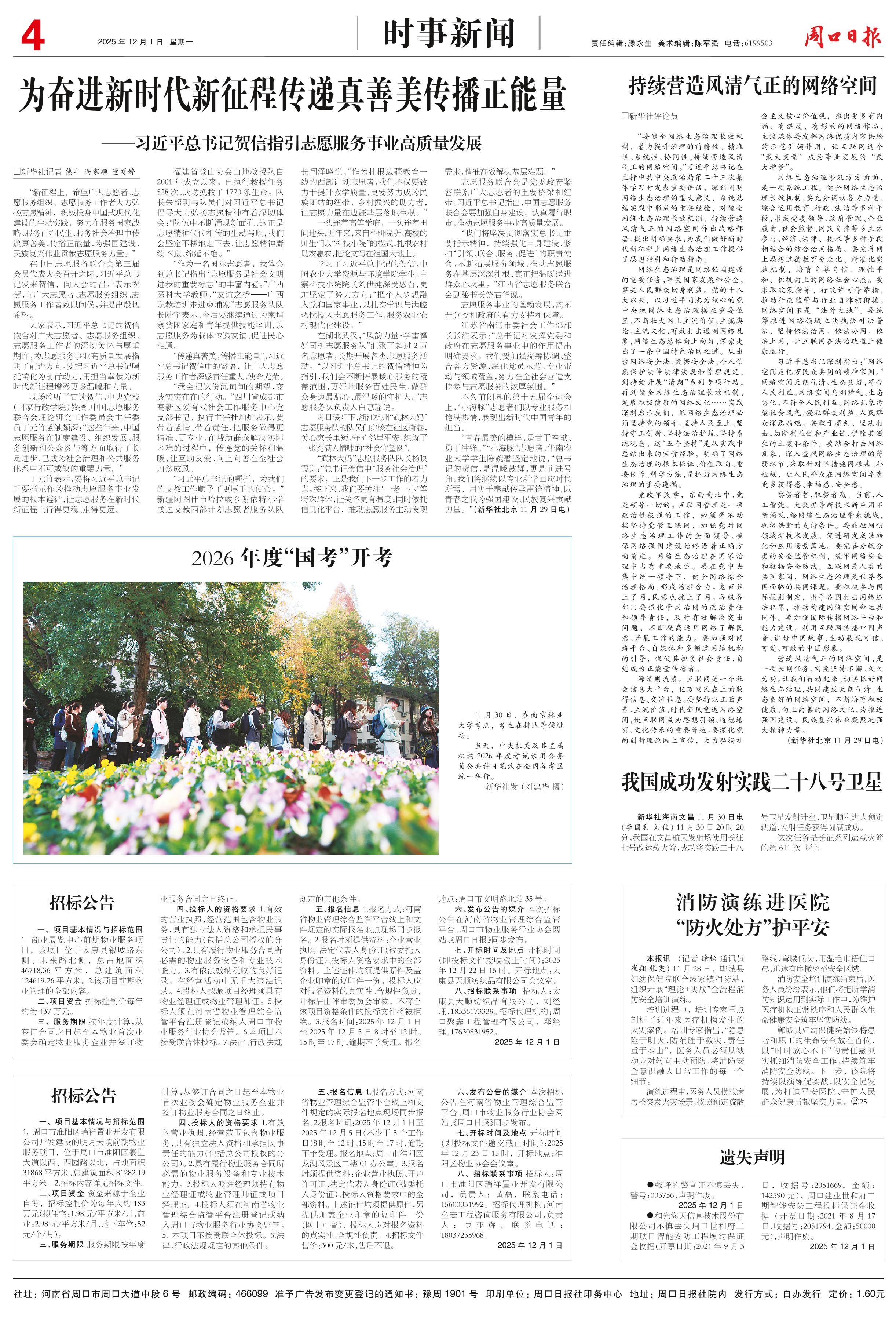 <div style='font-size: 22px!important;line-height: 34px!important;text-align: justify!important;color: #000!important'>我国成功发射实践二十八号卫星</div><div style='font-size: 14px!important;line-height: 22px!important;text-align: left!important;color: #777!important;margin-top: 20px;'>周口日报  2025-12-01</div><div><img id='paperImg' style='max-width: 100%;height: auto' src='//img.founderfx.cn/epaper/202511/30/d890bf46fdb64da6849321fa497e27a9/4.jpg' alt='' class='page-img'/></div><p> 新华社海南文昌11月30日电 (李国利 刘佳) 11月30日20时20分,我国在文昌航天发射场使用长征七号改运载火箭,成功将实践二十八号卫星发射升空,卫星顺利进入预定轨道,发射任务获得圆满成功。</p><p> 这次任务是长征系列运载火箭的第611次飞行。</p>