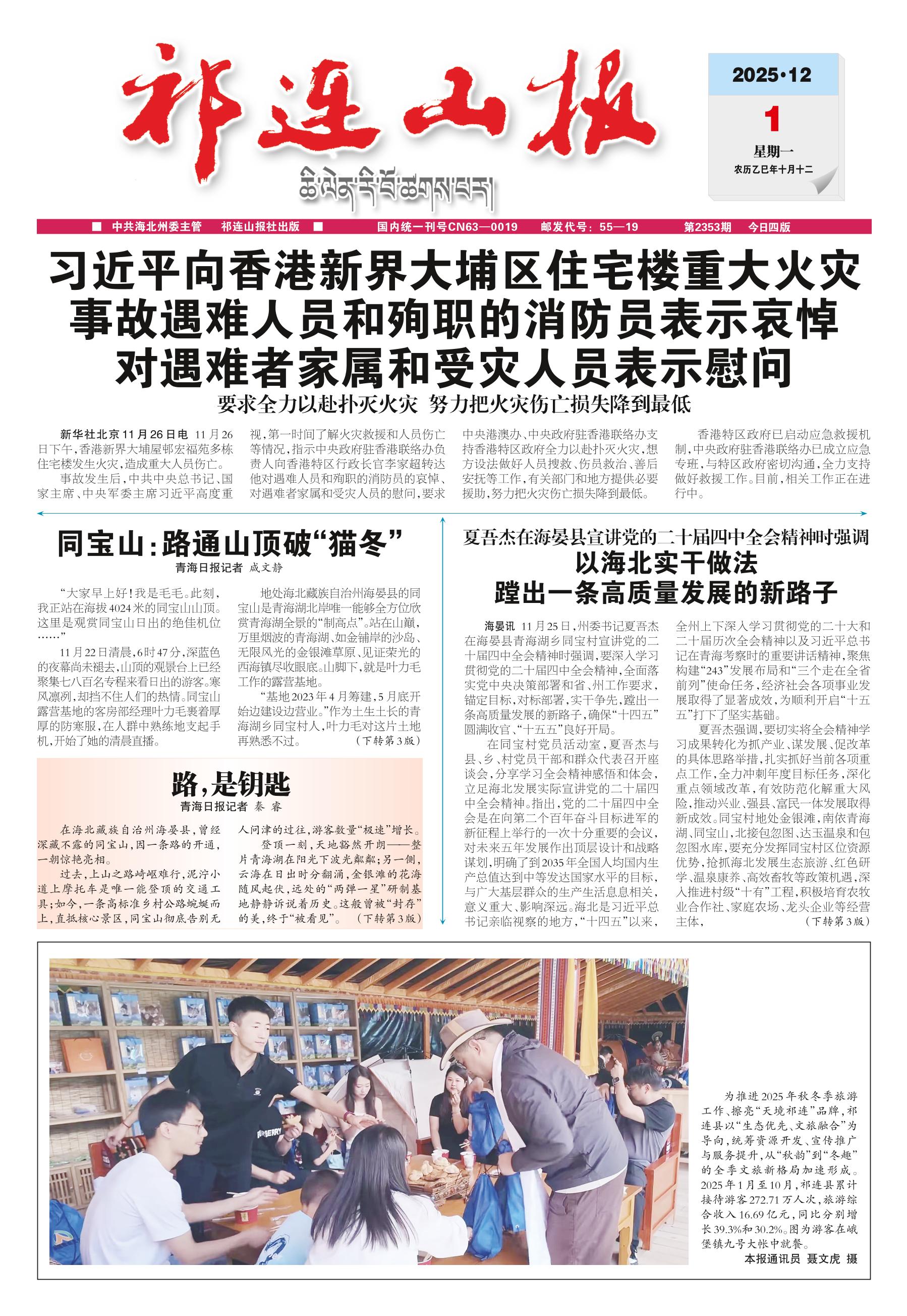 <div style='font-size: 16px!important;line-height: 28px!important;text-align: justify;color: #777!important;'>夏吾杰在海晏县宣讲党的二十届四中全会精神时强调</div><div style='font-size: 22px!important;line-height: 34px!important;text-align: justify!important;color: #000!important'>以海北实干做法 蹚出一条高质量发展的新路子</div><div style='font-size: 14px!important;line-height: 22px!important;text-align: left!important;color: #777!important;margin-top: 20px;'>祁连山报  2025-12-01</div><div><img id='paperImg' style='max-width: 100%;height: auto' src='//img.founderfx.cn/epaper/202512/01/7f337e5461904bdfac85c8bff7180e34/1.jpg' alt='' class='page-img'/></div><p> 海晏讯 11月25日,州委书记夏吾杰在海晏县青海湖乡同宝村宣讲党的二十届四中全会精神时强调,要深入学习贯彻党的二十届四中全会精神,全面落实党中央决策部署和省、州工作要求,锚定目标,对标部署,实干争先,蹚出一条高质量发展的新路子,确保“十四五”圆满收官、“十五五”良好开局。</p><p> 在同宝村党员活动室,夏吾杰与县、乡、村党员干部和群众代表召开座谈会,分享学习全会精神感悟和体会,立足海北发展实际宣讲党的二十届四中全会精神。指出,党的二十届四中全会是在向第二个百年奋斗目标进军的新征程上举行的一次十分重要的会议,对未来五年发展作出顶层设计和战略谋划,明确了到2035年全国人均国内生产总值达到中等发达国家水平的目标,与广大基层群众的生产生活息息相关,意义重大、影响深远。海北是习近平总书记亲临视察的地方,“十四五”以来,全州上下深入学习贯彻党的二十大和二十届历次全会精神以及习近平总书记在青海考察时的重要讲话精神,聚焦构建“243”发展布局和“三个走在全省前列”使命任务,经济社会各项事业发展取得了显著成效,为顺利开启“十五五”打下了坚实基础。</p><p> 夏吾杰强调,要切实将全会精神学习成果转化为抓产业、谋发展、促改革的具体思路举措,扎实抓好当前各项重点工作,全力冲刺年度目标任务,深化重点领域改革,有效防范化解重大风险,推动兴业、强县、富民一体发展取得新成效。同宝村地处金银滩,南依青海湖、同宝山,北接包忽图、达玉温泉和包忽图水库,要充分发挥同宝村区位资源优势,抢抓海北发展生态旅游、红色研学、温泉康养、高效畜牧等政策机遇,深入推进村级“十有”工程,积极培育农牧业合作社、家庭农场、龙头企业等经营主体,(下转第3版)</p><p> 同宝山:路通山顶破“猫冬”</p><p> 青海日报记者 咸文静</p><p> “大家早上好!我是毛毛。此刻,我正站在海拔4024米的同宝山山顶。这里是观赏同宝山日出的绝佳机位……”</p><p> 11月22日清晨,6时47分,深蓝色的夜幕尚未褪去,山顶的观景台上已经聚集七八百名专程来看日出的游客。寒风凛冽,却挡不住人们的热情。同宝山露营基地的客房部经理叶力毛裹着厚厚的防寒服,在人群中熟练地支起手机,开始了她的清晨直播。</p><p> 地处海北藏族自治州海晏县的同宝山是青海湖北岸唯一能够全方位欣赏青海湖全景的“制高点”。站在山巅,万里烟波的青海湖、如金铺岸的沙岛、无限风光的金银滩草原、见证荣光的西海镇尽收眼底。山脚下,就是叶力毛工作的露营基地。</p><p> “基地2023年4月筹建,5月底开始边建设边营业。”作为土生土长的青海湖乡同宝村人,叶力毛对这片土地再熟悉不过。(下转第3版)</p><p> 路,是钥匙</p><p> 青海日报记者 秦 睿</p><p> 在海北藏族自治州海晏县,曾经深藏不露的同宝山,因一条路的开通,一朝惊艳亮相。</p><p> 过去,上山之路崎岖难行,泥泞小道上摩托车是唯一能登顶的交通工具;如今,一条高标准乡村公路蜿蜒而上,直抵核心景区,同宝山彻底告别无人问津的过往,游客数量“极速”增长。</p><p> 登顶一刻,天地豁然开朗——整片青海湖在阳光下波光粼粼;另一侧,云海在日出时分翻涌,金银滩的花海随风起伏,远处的“两弹一星”研制基地静静诉说着历史。这般曾被“封存”的美,终于“被看见”。(下转第3版)</p>