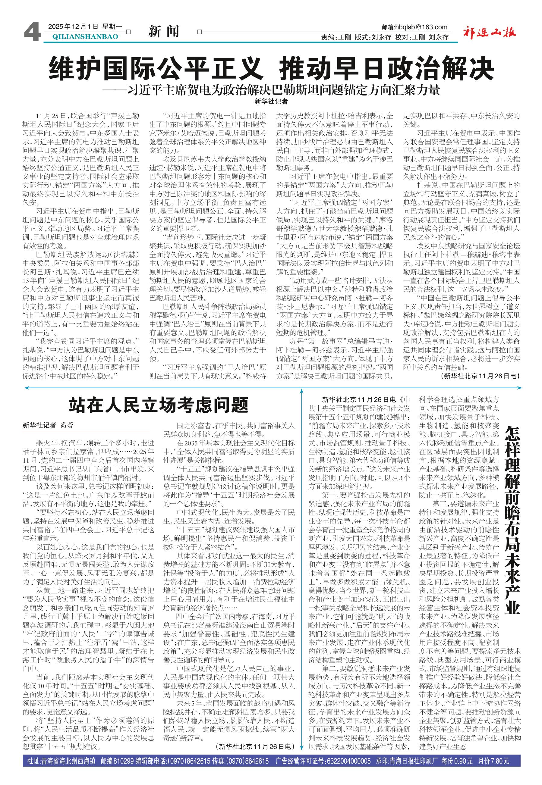 <div style='font-size: 22px!important;line-height: 34px!important;text-align: justify!important;color: #000!important'>怎样理解前瞻布局未来产业</div><div style='font-size: 14px!important;line-height: 22px!important;text-align: left!important;color: #777!important;margin-top: 20px;'>祁连山报  2025-12-01</div><div><img id='paperImg' style='max-width: 100%;height: auto' src='//img.founderfx.cn/epaper/202512/01/7f337e5461904bdfac85c8bff7180e34/4.jpg' alt='' class='page-img'/></div><p> 新华社北京11月26日电 《中共中央关于制定国民经济和社会发展第十五个五年规划的建议》提出:“前瞻布局未来产业,探索多元技术路线、典型应用场景、可行商业模式、市场监管规则,推动量子科技、生物制造、氢能和核聚变能、脑机接口、具身智能、第六代移动通信等成为新的经济增长点。”这为未来产业发展指明了方向。对此,可以从3个方面来加深理解把握。</p><p> 第一,要增强抢占发展先机的紧迫感,强化未来产业布局的前瞻性。纵观近现代历史,科技革命是产业变革的先导,每一次科技革命都会孕育出一批重塑全球竞争格局的新产业,引发大国兴衰。科技革命是厚积薄发、长期积累的结果,产业变革是量变到质变的过程,科技革命和产业变革没有到“临界点”并不意味着各国都“处在同一条起跑线上”,早做多做积累才能占领先机、赢得优势。当今世界,新一轮科技革命和产业变革加速突破,正催生出一批事关战略全局和长远发展的未来产业,它们可能就是“明天”的战略性新兴产业、“后天”的支柱产业。我们必须更加注重前瞻规划布局未来产业发展,走在产业体系现代化的前列,掌握全球创新版图重构、经济结构重塑的主动权。</p><p> 第二,要敏锐洞悉未来产业发展趋势,有所为有所不为地选择领域方向。与历次科技革命不同,新一轮科技革命和产业变革呈现出多点突破、群体性突破、交叉融合等新特征,孕育出的未来产业发展方向众多。在资源约束下,发展未来产业不可面面俱到、平均用力,必须准确研判未来科技发展趋势、经济社会发展需求、我国发展基础条件等因素,科学合理选择重点领域方向。在国家层面要聚焦重点领域,加快发展量子科技、生物制造、氢能和核聚变能、脑机接口、具身智能、第六代移动通信等重点产业。在区域层面要突出因地制宜,根据本地的资源禀赋、产业基础、科研条件等选择未来产业领域方向,多种模式探索未来产业发展路径,防止一哄而上、泡沫化。</p><p> 第三,要遵循未来产业特征和发展规律,强化支持政策的针对性。未来产业是由前沿技术驱动的前瞻性新兴产业,高度不确定性是其区别于新兴产业、传统产业最显著的特征。为降低产业投资回报的不确定性,解决早期投资、长期投资严重匮乏问题,要发展创业投资,建立未来产业投入增长和风险分担机制,鼓励各类经营主体和社会资本投资未来产业。为降低发展路径选择的不确定性,解决未来产业技术路线难把握、市场用户接受程度不高、配套制度不完善等问题,要探索多元技术路线、典型应用场景、可行商业模式、市场监管规则,通过有组织地复制推广好经验好做法,降低全社会探路成本。为降低产业生态不完善带来的不确定性,特别是解决经营主体少、产业链上中下游协作网络不健全等问题,要推动创新资源向企业集聚,创新监管方式,培育壮大科技领军企业,促进中小企业专精特新发展,培育独角兽企业,加快构建良好产业生态</p>