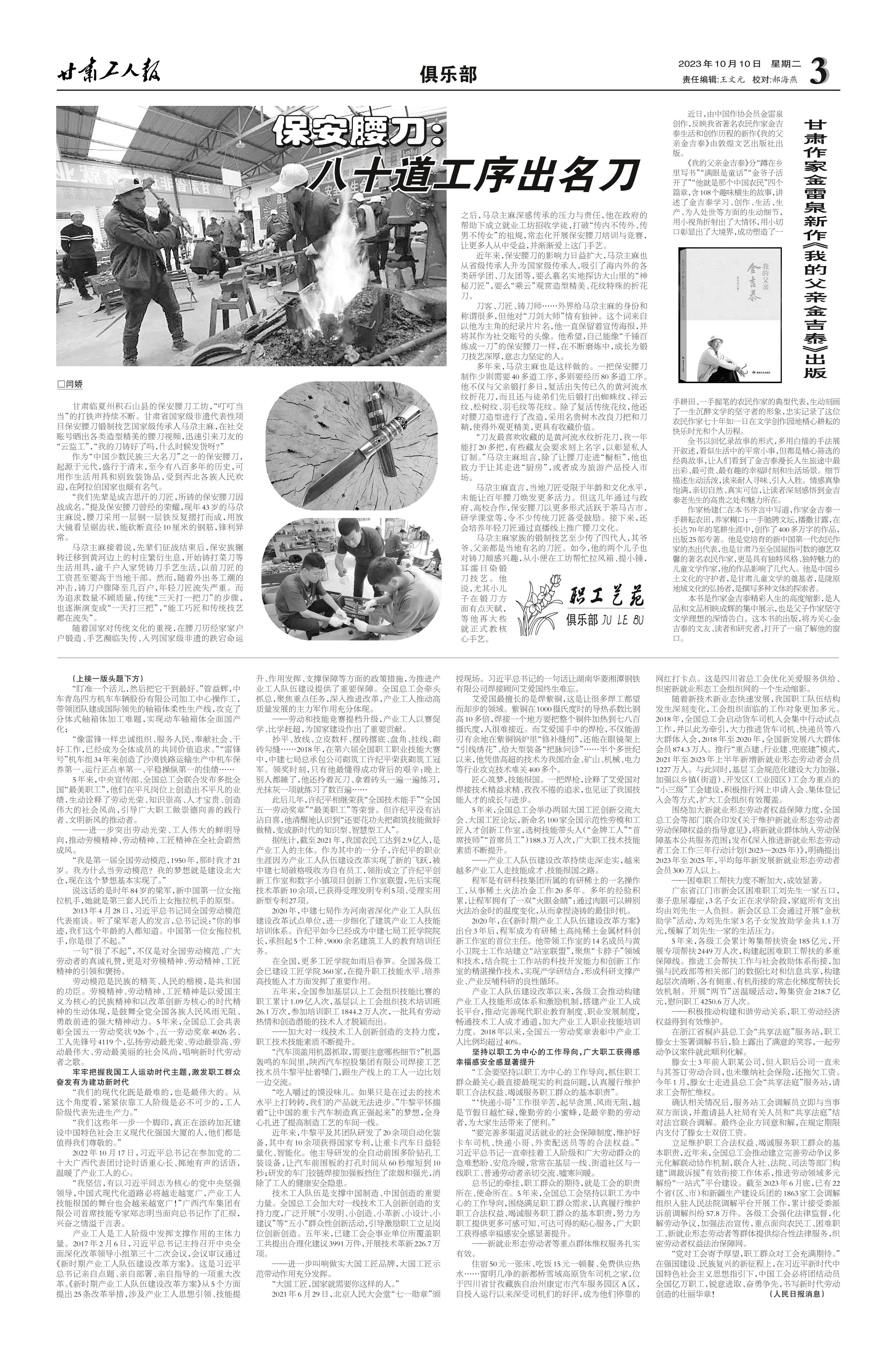 <p>甘肃临夏州积石山县的保安腰刀工坊,“叮叮当当”的打铁声持续不断。甘肃省国家级非遗代表性项目保安腰刀锻制技艺国家级传承人马尕主麻,在社交账号晒出各类造型精美的腰刀视频,迅速引来刀友的“云监工”,“我的刀铸好了吗,什么时候发货呀?”</p>
