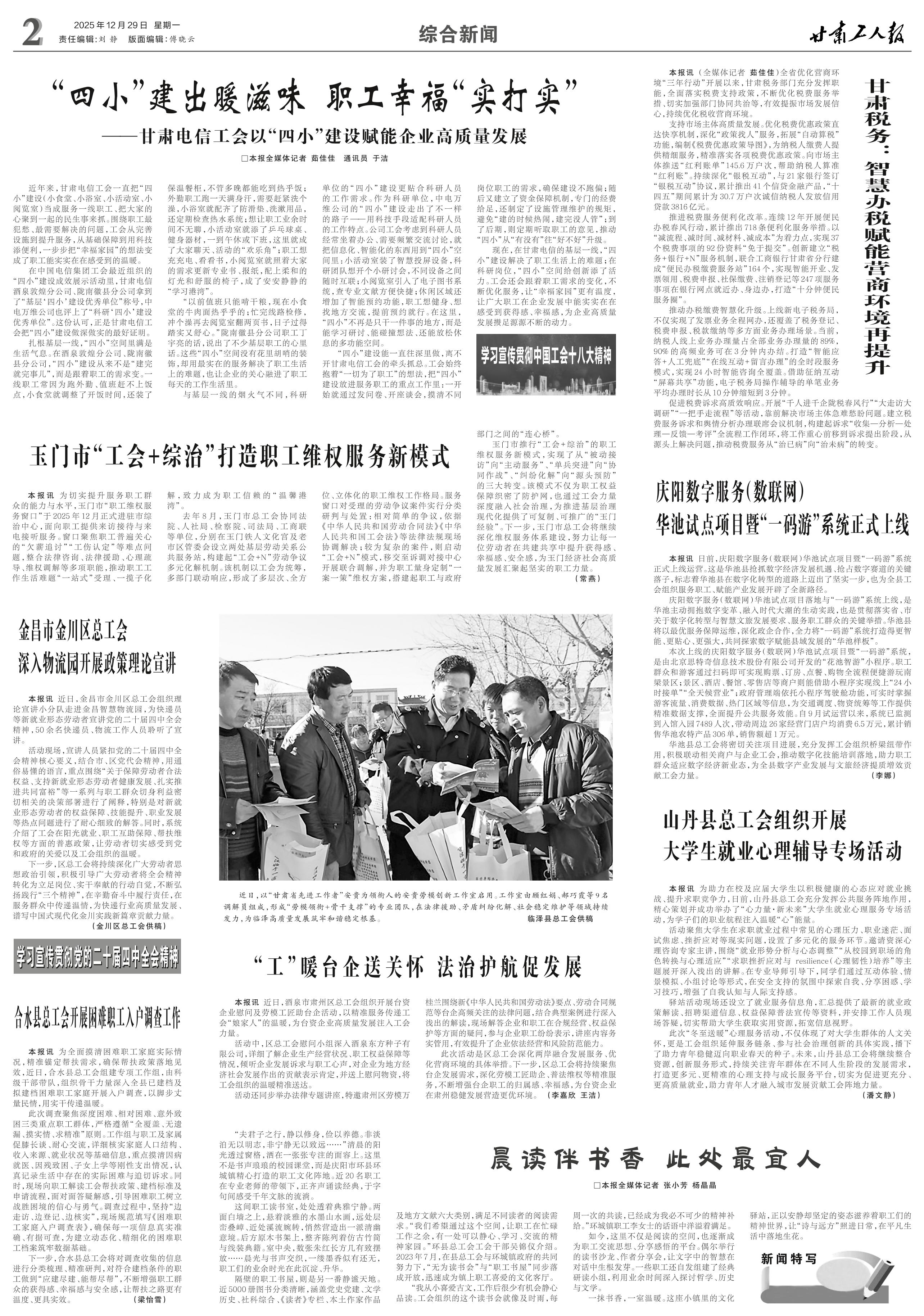 <div style='font-size: 22px!important;line-height: 34px!important;text-align: justify!important;color: #000!important'>“工”暖台企送关怀 法治护航促发展</div><div style='font-size: 14px!important;line-height: 22px!important;text-align: left!important;color: #777!important;margin-top: 20px;'>甘肃工人报  2025-12-29</div><div><img id='paperImg' style='max-width: 100%;height: auto' src='//img.founderfx.cn/epaper/202512/29/13bdbac7edff46db88edfa6f01ce0a49/2.jpg' alt='' class='page-img'/></div><p>本报讯 近日,酒泉市肃州区总工会组织开展台资企业慰问及劳模工匠助台企活动,以精准服务传递工会“娘家人”的温暖,为台资企业高质量发展注入工会力量。</p><p>活动中,区总工会慰问小组深入酒泉东方种子有限公司,详细了解企业生产经营状况、职工权益保障等情况,倾听企业发展诉求与职工心声,对企业为地方经济社会发展作出的贡献表示肯定,并送上慰问物资,将工会组织的温暖精准送达。</p><p>活动还同步举办法律专题讲座,特邀肃州区劳模万桂兰围绕新《中华人民共和国劳动法》要点、劳动合同规范等台企高频关注的法律问题,结合典型案例进行深入浅出的解读,现场解答企业和职工在合规经营、权益保护等方面的疑问,参与企业职工纷纷表示,讲座内容务实管用,有效提升了企业依法经营和风险防范能力。</p><p>此次活动是区总工会深化两岸融合发展服务、优化营商环境的具体举措。下一步,区总工会将持续聚焦台企发展需求,深化劳模工匠助企、普法维权等精准服务,不断增强台企职工的归属感、幸福感,为台资企业在肃州稳健发展营造更优环境。(李嘉欣 王洁)</p>