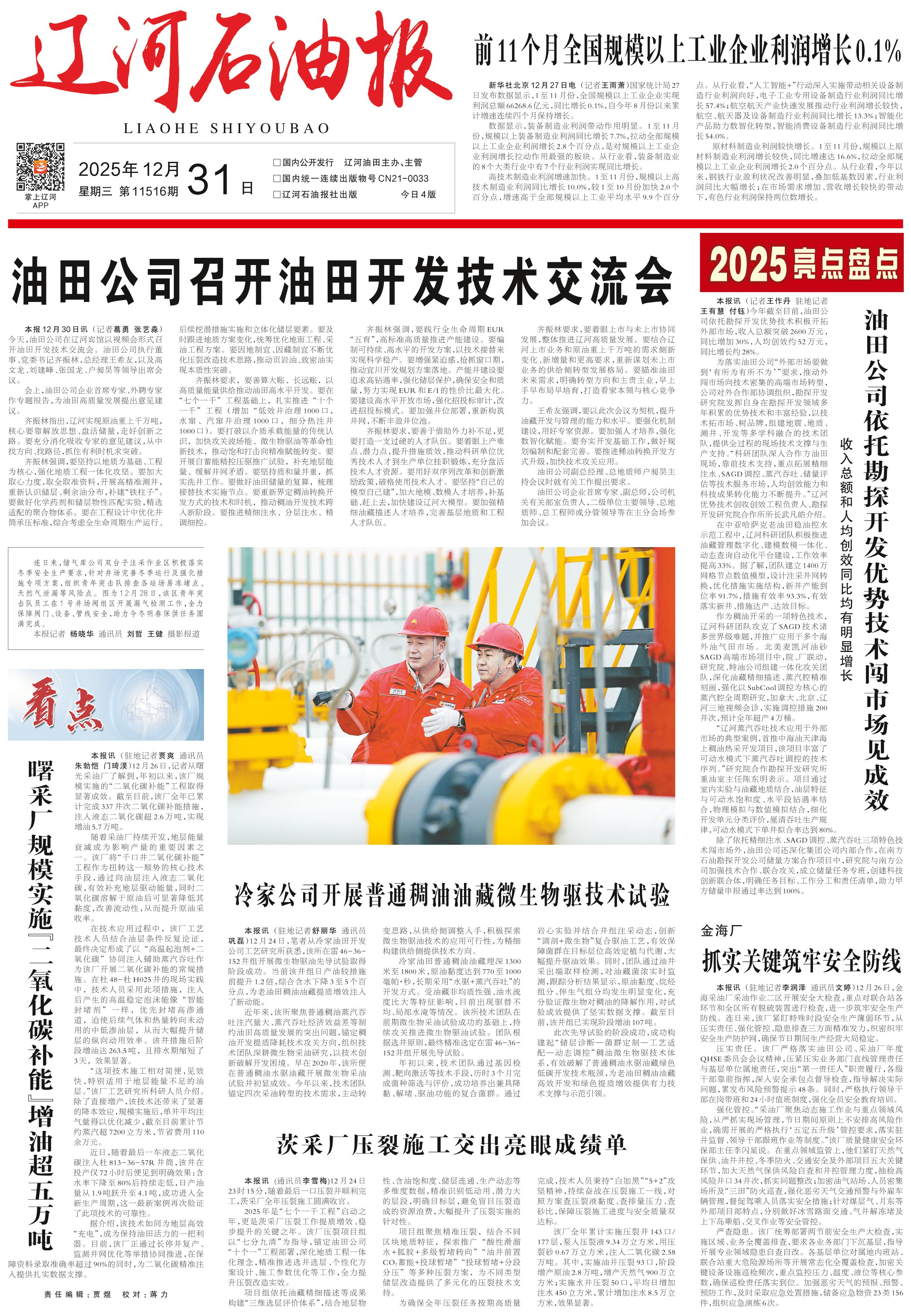 <div style='font-size: 22px!important;line-height: 34px!important;text-align: justify!important;color: #000!important'>图片新闻</div><div style='font-size: 14px!important;line-height: 22px!important;text-align: left!important;color: #777!important;margin-top: 20px;'>辽河石油报  杨晓华 刘哲 王健  2025-12-31</div><div><img id='paperImg' style='max-width: 100%;height: auto' src='//img.founderfx.cn/epaper/202512/31/64a447fa331e4fe19baeac5a175d7572/1.jpg' alt='' class='page-img'/></div><div style='font-size: 14px!important;line-height: 22px!important;text-align: center!important;color: #777!important;'><img src='//img.founderfx.cn/epaper/202512/31/64a447fa331e4fe19baeac5a175d7572/01/3523368_wx_1767075895262_s.jpg'style='display: block!important;margin: auto!important;max-width: 100%!important;'/> 连日来,储气库公司双台子注采作业区积极落实冬季安全生产要求,针对井场完善冬季运行及强化措施专项方案,组织青年突击队排查各站场易冻堵点、天然气泄漏等风险点。图为12月28日,该区青年突击队员工在1号井场阀组区开展漏气检测工作,全力保障阀门、设备、管线安全,助力今冬明春保供任务圆满完成。