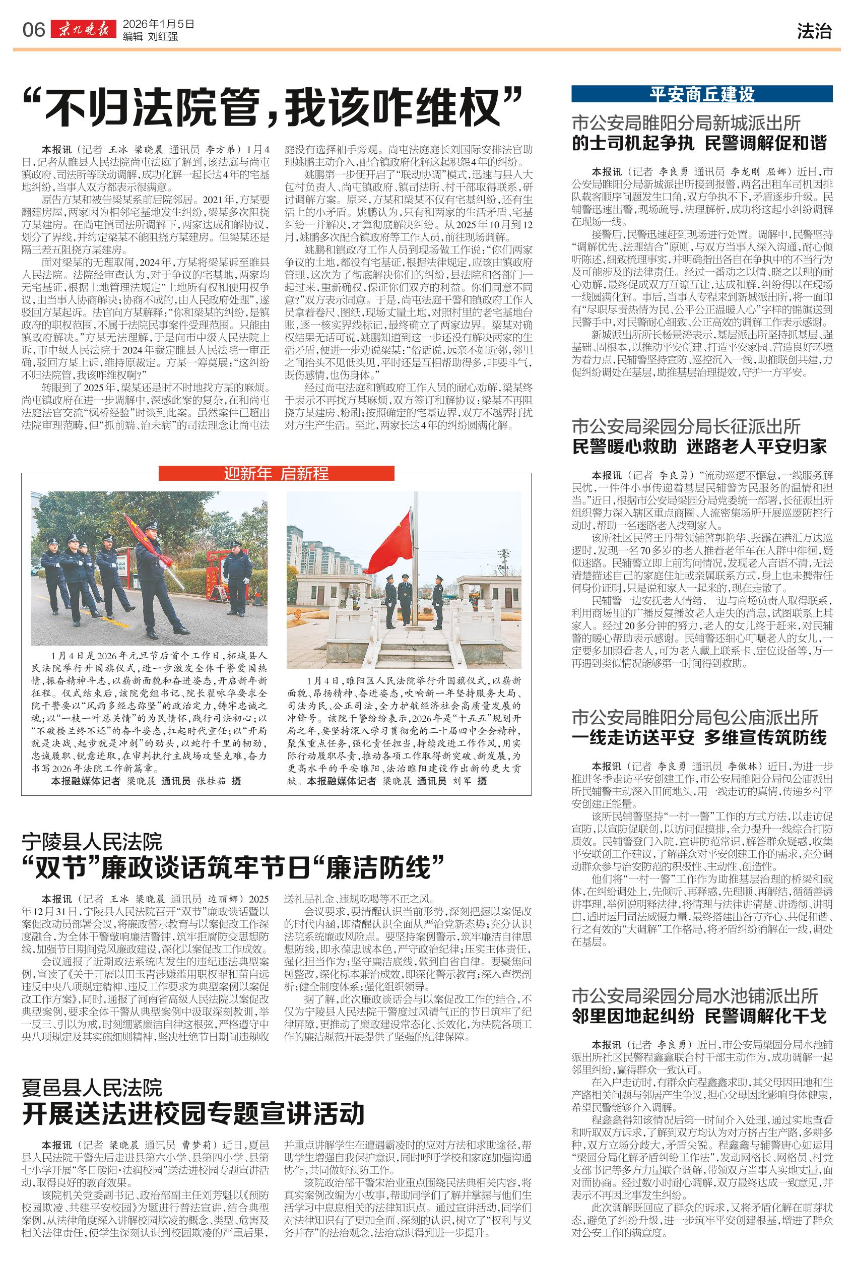 <div style='font-size: 16px!important;line-height: 28px!important;text-align: justify;color: #777!important;'>市公安局梁园分局长征派出所</div><div style='font-size: 22px!important;line-height: 34px!important;text-align: justify!important;color: #000!important'>民警暖心救助 迷路老人平安归家</div><div style='font-size: 14px!important;line-height: 22px!important;text-align: left!important;color: #777!important;margin-top: 20px;'>京九晚报云阅读  记者 李良勇  2026-01-05</div><div><img id='paperImg' style='max-width: 100%;height: auto' src='//img.founderfx.cn/epaper/202601/05/d7254f2ee0b24b72927640d494feb63e/6.jpg' alt='' class='page-img'/></div><p> “流动巡逻不懈怠,一线服务解民忧,一件件小事传递着基层民辅警为民服务的温情和担当。”近日,根据市公安局梁园分局党委统一部署,长征派出所组织警力深入辖区重点商圈、人流密集场所开展巡逻防控行动时,帮助一名迷路老人找到家人。</p><p> 该所社区民警王丹带领辅警郭艳华、张露在港汇万达巡逻时,发现一名70多岁的老人推着老年车在人群中徘徊,疑似迷路。民辅警立即上前询问情况,发现老人言语不清,无法清楚描述自己的家庭住址或亲属联系方式,身上也未携带任何身份证明,只是说和家人一起来的,现在走散了。</p><p> 民辅警一边安抚老人情绪,一边与商场负责人取得联系,利用商场里的广播反复播放老人走失的消息,试图联系上其家人。经过20多分钟的努力,老人的女儿终于赶来,对民辅警的暖心帮助表示感谢。民辅警还细心叮嘱老人的女儿,一定要多加照看老人,可为老人戴上联系卡、定位设备等,万一再遇到类似情况能够第一时间得到救助。</p>