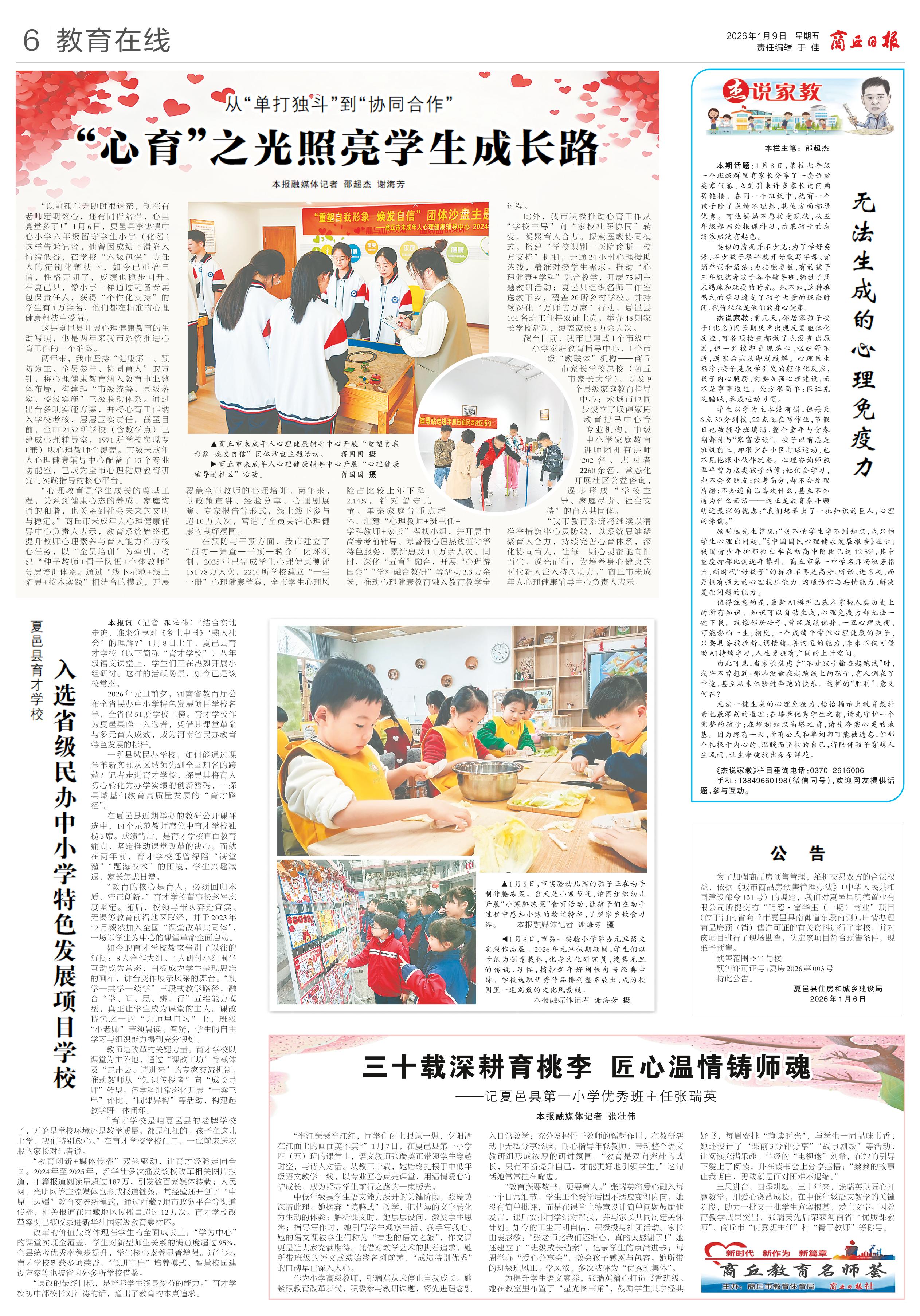 <div style='font-size: 16px!important;line-height: 28px!important;text-align: justify;color: #777!important;'>夏邑县育才学校</div><div style='font-size: 22px!important;line-height: 34px!important;text-align: justify!important;color: #000!important'>入选省级民办中小学特色发展项目学校</div><div style='font-size: 14px!important;line-height: 22px!important;text-align: left!important;color: #777!important;margin-top: 20px;'>商丘日报云阅读  记者 张壮伟  2026-01-09</div><div><img id='paperImg' style='max-width: 100%;height: auto' src='//img.founderfx.cn/epaper/202601/09/edf227ed361f4753a1361e25e07ce8d9/5.jpg' alt='' class='page-img'/></div><p> “结合实地走访,谁来分享对《乡土中国》‘熟人社会’的理解?”1月8日上午,夏邑县育才学校(以下简称“育才学校”)八年级语文课堂上,学生们正在热烈开展小组研讨。这样的活跃场景,如今已是该校常态。</p><p> 2026年元旦前夕,河南省教育厅公布全省民办中小学特色发展项目学校名单,全省仅51所学校上榜。育才学校作为夏邑县唯一入选者,凭借其课堂革命与多元育人成效,成为河南省民办教育特色发展的标杆。</p><p> 一所县域民办学校,如何能通过课堂革新实现从区域领先到全国知名的跨越?记者走进育才学校,探寻其将育人初心转化为办学实绩的创新密码,一探县域基础教育高质量发展的“育才路径”。</p><p> 在夏邑县近期举办的教研公开课评选中,14个示范教师席位中育才学校独揽5席。成绩背后,是育才学校直面教育痛点、坚定推动课堂改革的决心。而就在两年前,育才学校还曾深陷“满堂灌”“题海战术”的困境,学生兴趣减退,家长焦虑日增。</p><p> “教育的核心是育人,必须回归本质、守正创新。”育才学校董事长赵军态度坚定。随后,校领导带队奔赴宜宾、无锡等教育前沿地区取经,并于2023年12月毅然加入全国“课堂改革共同体”,一场以学生为中心的课堂革命全面启动。</p><p> 如今的育才学校教室告别了以往的沉闷:8人合作大组、4人研讨小组围坐互动成为常态,白板成为学生呈现思维的画布,讲台变作展示风采的舞台。“预学—共学—续学”三段式教学路径,融合“学、问、思、辨、行”五维能力模型,真正让学生成为课堂的主人。课改特色之一的“无师早自习”上,班级“小老师”带领晨读、答疑,学生的自主学习与组织能力得到充分锻炼。</p><p> 教师是改革的关键力量。育才学校以课堂为主阵地,通过“课改工坊”等载体及“走出去、请进来”的专家交流机制,推动教师从“知识传授者”向“成长导师”转型。各学科组常态化开展“一案三单”评比、“同课异构”等活动,构建起教学研一体闭环。</p><p> “育才学校是咱夏邑县的老牌学校了,无论是学校环境还是教学质量,都是杠杠的。孩子在这儿上学,我们特别放心。”在育才学校学校门口,一位前来送衣服的家长对记者说。</p><p> “教育创新+媒体传播”双轮驱动,让育才经验走向全国。2024年至2025年,新华社多次播发该校改革相关图片报道,单篇报道阅读量超过187万,引发数百家媒体转载;人民网、光明网等主流媒体也形成报道链条。其经验还开创了“中原—边疆”教育交流新模式,通过西藏7地市政务平台等渠道传播,相关报道在西藏地区传播量超过12万次。育才学校改革案例已被收录进新华社国家级教育素材库。</p><p> 改革的价值最终体现在学生的全面成长上:“学为中心”的课堂实现全覆盖,学生对新型师生关系的满意度超过95%,全县统考优秀率稳步提升,学生核心素养显著增强。近年来,育才学校斩获多项荣誉,“低进高出”培养模式、智慧校园建设方案等也被省内外多所学校借鉴。</p><p> “课改的最终目标,是培养学生终身受益的能力。”育才学校初中部校长刘江涛的话,道出了教育的本真追求。</p>