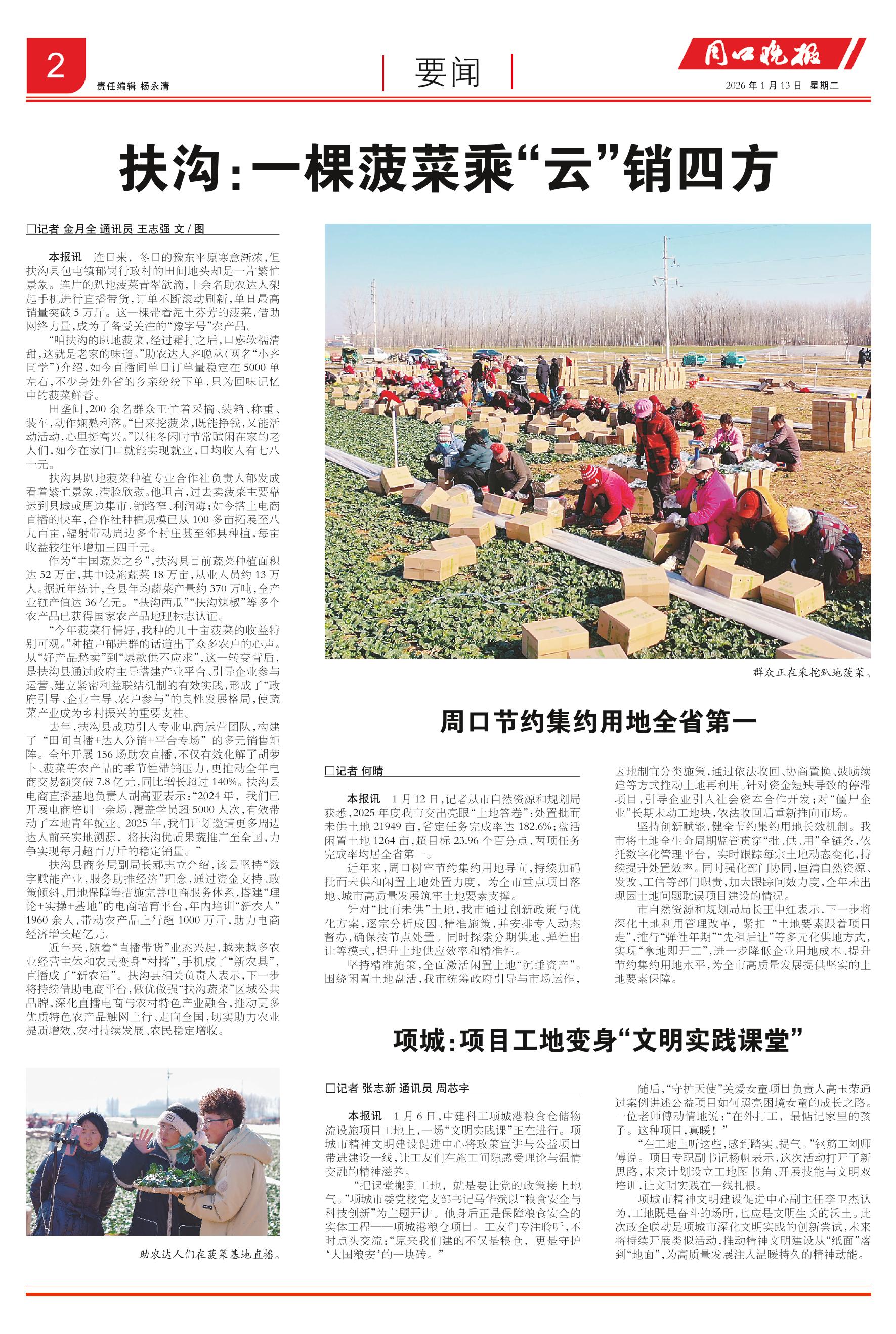 <div style='font-size: 22px!important;line-height: 34px!important;text-align: justify!important;color: #000!important'>扶沟:一棵菠菜乘“云”销四方</div><div style='font-size: 14px!important;line-height: 22px!important;text-align: left!important;color: #777!important;margin-top: 20px;'>周口晚报  2026-01-13</div><div><img id='paperImg' style='max-width: 100%;height: auto' src='//img.founderfx.cn/epaper/202601/13/aec953edcd6b4c9fb7c20aa4d7d1f070/2.jpg' alt='' class='page-img'/></div><div style='font-size: 14px!important;line-height: 22px!important;text-align: center!important;color: #777!important;'><img src='//img.founderfx.cn/epaper/202601/13/aec953edcd6b4c9fb7c20aa4d7d1f070/02/eb0382d51f56642c63012c1358ea898e_1_s.jpg'style='display: block!important;margin: auto!important;max-width: 100%!important;'/> 群众正在采挖趴地菠菜。<img src='//img.founderfx.cn/epaper/202601/13/aec953edcd6b4c9fb7c20aa4d7d1f070/02/eb0382d51f56642c63012c1358ea898e_3_s.jpg'style='display: block!important;margin: auto!important;max-width: 100%!important;'/> 助农达人们在菠菜基地直播。</div><p> □记者 金月全 通讯员 王志强 文/图</p><p> 本报讯 连日来,冬日的豫东平原寒意渐浓,但扶沟县包屯镇郁岗行政村的田间地头却是一片繁忙景象。连片的趴地菠菜青翠欲滴,十余名助农达人架起手机进行直播带货,订单不断滚动刷新,单日最高销量突破5万斤。这一棵带着泥土芬芳的菠菜,借助网络力量,成为了备受关注的“豫字号”农产品。</p><p> “咱扶沟的趴地菠菜,经过霜打之后,口感软糯清甜,这就是老家的味道。”助农达人齐聪丛(网名“小齐同学”)介绍,如今直播间单日订单量稳定在5000单左右,不少身处外省的乡亲纷纷下单,只为回味记忆中的菠菜鲜香。</p><p> 田垄间,200余名群众正忙着采摘、装箱、称重、装车,动作娴熟利落。“出来挖菠菜,既能挣钱,又能活动活动,心里挺高兴。”以往冬闲时节常赋闲在家的老人们,如今在家门口就能实现就业,日均收入有七八十元。</p><p> 扶沟县趴地菠菜种植专业合作社负责人郁发成看着繁忙景象,满脸欣慰。他坦言,过去卖菠菜主要靠运到县城或周边集市,销路窄、利润薄;如今搭上电商直播的快车,合作社种植规模已从100多亩拓展至八九百亩,辐射带动周边多个村庄甚至邻县种植,每亩收益较往年增加三四千元。</p><p> 作为“中国蔬菜之乡”,扶沟县目前蔬菜种植面积达52万亩,其中设施蔬菜18万亩,从业人员约13万人。据近年统计,全县年均蔬菜产量约370万吨,全产业链产值达36亿元。“扶沟西瓜”“扶沟辣椒”等多个农产品已获得国家农产品地理标志认证。</p><p> “今年菠菜行情好,我种的几十亩菠菜的收益特别可观。”种植户郁进群的话道出了众多农户的心声。从“好产品愁卖”到“爆款供不应求”,这一转变背后,是扶沟县通过政府主导搭建产业平台、引导企业参与运营、建立紧密利益联结机制的有效实践,形成了“政府引导、企业主导、农户参与”的良性发展格局,使蔬菜产业成为乡村振兴的重要支柱。</p><p> 去年,扶沟县成功引入专业电商运营团队,构建了“田间直播+达人分销+平台专场”的多元销售矩阵。全年开展156场助农直播,不仅有效化解了胡萝卜、菠菜等农产品的季节性滞销压力,更推动全年电商交易额突破7.8亿元,同比增长超过140%。扶沟县电商直播基地负责人胡高亚表示:“2024年,我们已开展电商培训十余场,覆盖学员超5000人次,有效带动了本地青年就业。2025年,我们计划邀请更多周边达人前来实地溯源,将扶沟优质果蔬推广至全国,力争实现每月超百万斤的稳定销量。”</p><p> 扶沟县商务局副局长郝志立介绍,该县坚持“数字赋能产业,服务助推经济”理念,通过资金支持、政策倾斜、用地保障等措施完善电商服务体系,搭建“理论+实操+基地”的电商培育平台,年内培训“新农人”1960余人,带动农产品上行超1000万斤,助力电商经济增长超亿元。</p><p> 近年来,随着“直播带货”业态兴起,越来越多农业经营主体和农民变身“村播”,手机成了“新农具”,直播成了“新农活”。扶沟县相关负责人表示,下一步将持续借助电商平台,做优做强“扶沟蔬菜”区域公共品牌,深化直播电商与农村特色产业融合,推动更多优质特色农产品触网上行、走向全国,切实助力农业提质增效、农村持续发展、农民稳定增收。</p>