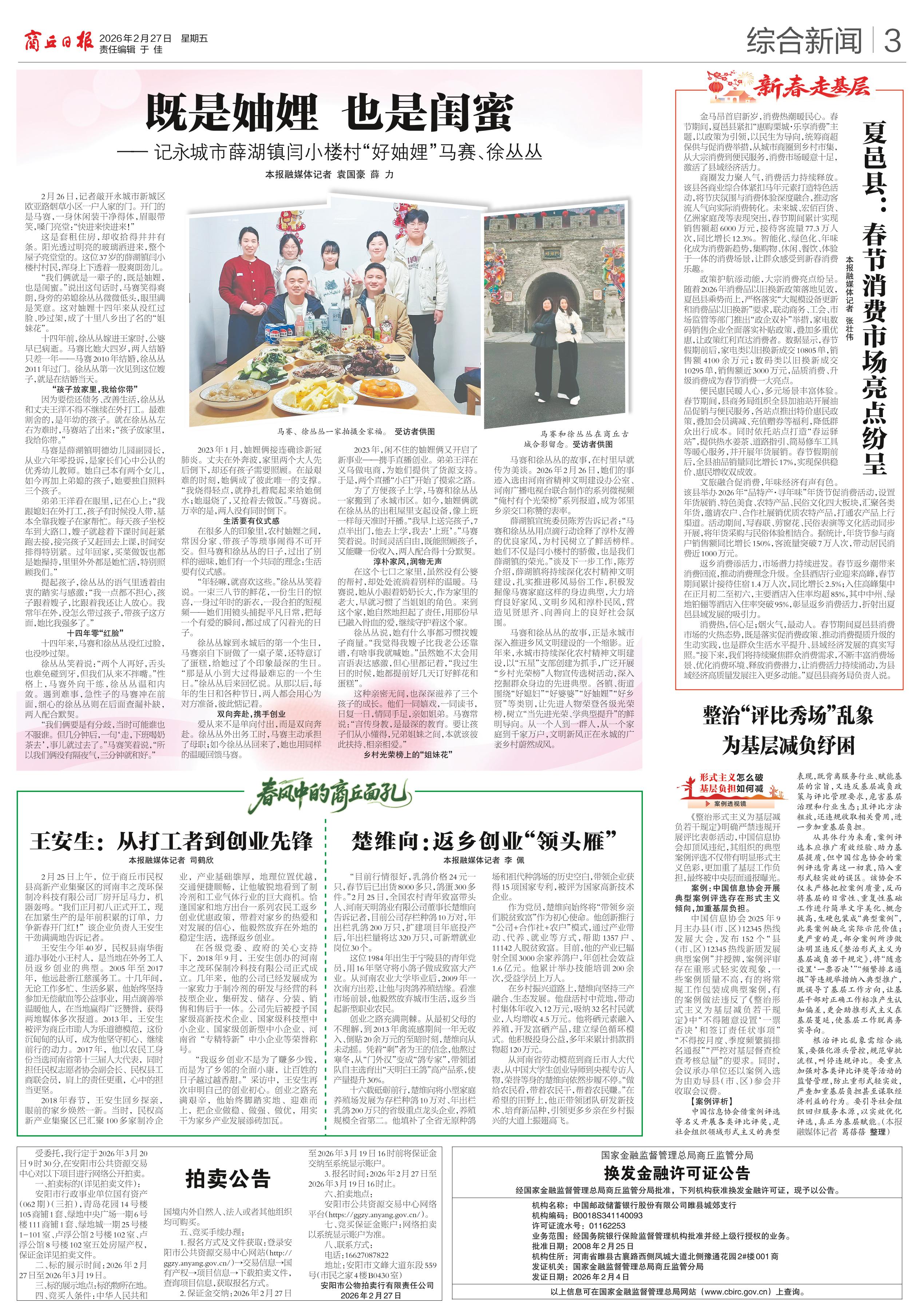 <div style='font-size: 22px!important;line-height: 34px!important;text-align: justify!important;color: #000!important'>既是妯娌 也是闺蜜</div><div style='font-size: 16px!important;line-height: 28px!important;text-align: justify;color: #777!important;margin-top: 20px;'>一一 记永城市薛湖镇闫小楼村“好妯娌”马赛、徐丛丛</div><div style='font-size: 14px!important;line-height: 22px!important;text-align: left!important;color: #777!important;margin-top: 20px;'>商丘日报云阅读  本报融媒体记者 袁国豪 薛 力  2026-02-27</div><div><img id='paperImg' style='max-width: 100%;height: auto' src='//img.founderfx.cn/epaper/202602/27/d8aac696a9d641588ffd775277f17638/3.jpg' alt='' class='page-img'/></div><div style='font-size: 14px!important;line-height: 22px!important;text-align: center!important;color: #777!important;'><img src='//img.founderfx.cn/epaper/202602/27/d8aac696a9d641588ffd775277f17638/03/3445883_gm_1772110213953_s.jpg'style='display: block!important;margin: auto!important;max-width: 100%!important;'/> 马赛、徐丛丛一家拍摄全家福。 受访者供图<img src='//img.founderfx.cn/epaper/202602/27/d8aac696a9d641588ffd775277f17638/03/3445881_gm_1772110372351_s.jpg'style='display: block!important;margin: auto!important;max-width: 100%!important;'/> 马赛和徐丛丛在商丘古城合影留念。受访者供图</div><p> 2月26日,记者敲开永城市新城区欧亚路烟草小区一户人家的门。开门的是马赛,一身休闲装干净得体,眉眼带笑,嗓门亮堂:“快进来快进来!”</p><p> 这是套租住房,却收拾得井井有条。阳光透过明亮的玻璃洒进来,整个屋子亮堂堂的。这位37岁的薛湖镇闫小楼村村民,浑身上下透着一股爽朗劲儿。</p><p> “我们俩就是一辈子的,既是妯娌,也是闺蜜。”说出这句话时,马赛笑得爽朗,身旁的弟媳徐丛丛微微低头,眼里满是笑意。这对妯娌十四年来从没红过脸、吵过架,成了十里八乡出了名的“姐妹花”。</p><p> 十四年前,徐丛丛嫁进王家时,公婆早已病逝。马赛比她大四岁,两人结婚只差一年——马赛2010年结婚,徐丛丛2011年过门。徐丛丛第一次见到这位嫂子,就是在结婚当天。</p><p> “孩子放家里,我给你带”</p><p> 因为要偿还债务、改善生活,徐丛丛和丈夫王洋不得不继续在外打工。最难割舍的,是年幼的孩子。就在徐丛丛左右为难时,马赛站了出来:“孩子放家里,我给你带。”</p><p> 马赛是薛湖镇明德幼儿园副园长,从业六年零投诉,是家长们心中公认的优秀幼儿教师。她自己本有两个女儿,如今再加上弟媳的孩子,她要独自照料三个孩子。</p><p> 弟弟王洋看在眼里,记在心上:“我跟媳妇在外打工,孩子有时候没人带,基本全靠我嫂子在家帮忙。每天孩子坐校车到大路口,嫂子就趁着下课时间赶紧跑去接,接完孩子又赶回去上课,时间安排得特别紧。过年回家,买菜做饭也都是她操持,里里外外都是她忙活,特别照顾我们。”</p><p> 提起孩子,徐丛丛的语气里透着由衷的踏实与感激:“我一点都不担心,孩子跟着嫂子,比跟着我还让人放心。我常年在外,没怎么带过孩子,带孩子这方面,她比我强多了。”</p><p> 十四年零“红脸”</p><p> 十四年来,马赛和徐丛丛没红过脸,也没吵过架。</p><p> 徐丛丛笑着说:“两个人再好,舌头也难免碰到牙,但我们从来不拌嘴。”性格上,马赛外向干练,徐丛丛温和内敛。遇到难事,急性子的马赛冲在前面,细心的徐丛丛则在后面查漏补缺,两人配合默契。</p><p> “我们俩要是有分歧,当时可能谁也不服谁。但几分钟后,一句‘走,下班喝奶茶去’,事儿就过去了。”马赛笑着说,“所以我们俩没有隔夜气,三分钟就和好。”</p><p> 2023年1月,妯娌俩接连确诊新冠肺炎。丈夫在外奔波,家里两个大人先后倒下,却还有孩子需要照顾。在最艰难的时刻,她俩成了彼此唯一的支撑。“我烧得轻点,就挣扎着爬起来给她倒水;她退烧了,又抢着去做饭。”马赛说。万幸的是,两人没有同时倒下。</p><p> 生活要有仪式感</p><p> 在很多人的印象里,农村妯娌之间,常因分家、带孩子等琐事闹得不可开交。但马赛和徐丛丛的日子,过出了别样的滋味,她们有一个共同的理念:生活要有仪式感。</p><p> “年轻嘛,就喜欢这些。”徐丛丛笑着说。一束三八节的鲜花,一份生日的惊喜,一身过年时的新衣,一段合拍的短视频——她们用镜头捕捉平凡日常,把每一个有爱的瞬间,都过成了闪着光的日子。</p><p> 徐丛丛嫁到永城后的第一个生日,马赛亲自下厨做了一桌子菜,还特意订了蛋糕,给她过了个印象最深的生日。“那是从小到大过得最难忘的一个生日。”徐丛丛后来回忆说。从那以后,每年的生日和各种节日,两人都会用心为对方准备,彼此惦记着。</p><p> 双向奔赴,携手创业</p><p> 爱从来不是单向付出,而是双向奔赴。徐丛丛外出务工时,马赛主动承担了母职;如今徐丛丛回来了,她也用同样的温暖回馈马赛。</p><p> 2023年,闲不住的妯娌俩又开启了新事业——携手直播创业。弟弟王洋在义乌做电商,为她们提供了货源支持。于是,两个直播“小白”开始了摸索之路。</p><p> 为了方便孩子上学,马赛和徐丛丛一家搬到了永城市区。如今,妯娌俩就在徐丛丛的出租屋里支起设备,像上班一样每天准时开播。“我早上送完孩子,7点半出门,他去上学,我去‘上班’。”马赛笑着说。时间灵活自由,既能照顾孩子,又能赚一份收入,两人配合得十分默契。</p><p> 淳朴家风,润物无声</p><p> 在这个七口之家里,虽然没有公婆的帮衬,却处处流淌着别样的温暖。马赛说,她