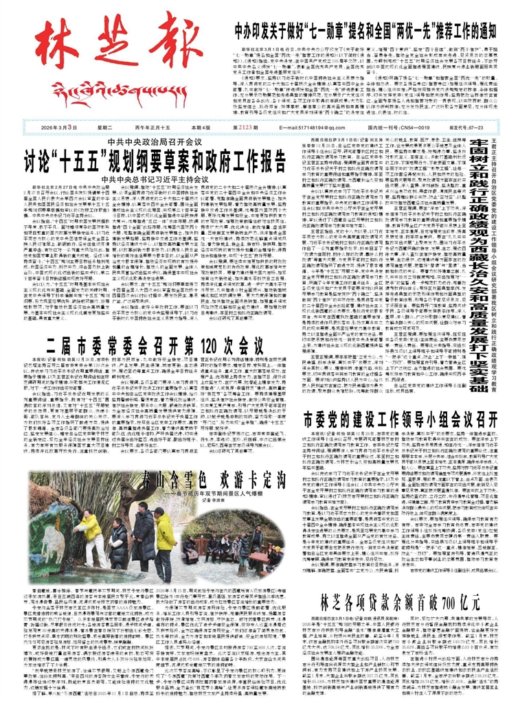 <div style='font-size: 22px!important;line-height: 34px!important;text-align: justify!important;color: #000!important'>二届市委常委会召开第120次会议</div><div style='font-size: 14px!important;line-height: 22px!important;text-align: left!important;color: #777!important;margin-top: 20px;'>林芝报-汉文版  2026-03-03</div><div><img id='paperImg' style='max-width: 100%;height: auto' src='//img.founderfx.cn/epaper/202603/03/140a17077ded408d8f77cf54523a58ff/1.jpg' alt='' class='page-img'/></div><p>本报讯(记者 何怡 胡昊)2月28日,市委书记巴塔主持召开二届市委常委会第120次会议,传达学习习近平总书记近期重要讲话、重要指示精神,以及王君正书记近期讲话和在林芝调研期间的指示精神,听取相关工作情况汇报,对下一步工作作出安排部署。</p><p>会议指出,习近平总书记近期发表的系列重要讲话、重要指示,既有对“十四五”圆满收官的深刻总结,又有对“十五五”开局起步的总动员,更有对基层干部群众、快递小哥、部队官兵、党外人士等群体的关心关怀,为我们抓好各项工作指明了前进方向、提供了根本遵循。全市各级各部门要提高政治站位、坚定发展信心,锚定自治区党委赋予林芝的全新定位,紧扣全年经济社会发展目标任务,有力有序有效服务保障国家重大项目建设,持续深化改革开放先行,注重科技创新,树牢为民宗旨,扎实做好安全稳定、项目建设、产业发展、民生保障、城市更新、生态保护、强边固边等重点工作,确保全年目标任务顺利完成。</p><p>会议强调,各级各部门要深入学习贯彻习近平总书记关于政法工作的重要指示,认真落实中央和自治区党委政法工作会议精神,始终坚持警钟长鸣、警惕常在,着力强化政治建设、维护社会稳定、服务中心大局、锻造政法铁军,为全市经济社会高质量发展提供有力保障。要深入学习贯彻习近平总书记关于换届工作的重要指示,按照自治区党委工作要求,高标准、高质量推进换届工作,着力建设高素质干部队伍、优化班子结构、严明换届纪律,切实通过换届绘出好蓝图、选出好干部、配出好班子、树立好导向、涵养好生态。</p><p>会议要求,各级各部门要认真学习贯彻王君正书记近期系列讲话精神,特别是在林芝调研时的指示要求,锚定目标、乘势而上,一体推进重点任务、重点工作、重大改革落地见效,在强产业、优布局上持续发力,在推项目、促投资上攻坚发力,在扩内需、挖潜能上精准发力,持续推进“人间桃源·幸福林芝”建设,高质量做好“桃花节”各项筹备工作。要持续建强基层组织,坚决维护社会稳定,做好公共安全管理,抓实复工复产复学,引导广大党员干部牢固树立和践行正确政绩观,以开局就是决战的干劲、以起步就是冲刺的拼劲,奋力夺取一季度“开门红”、努力实现“全年胜”,确保“十五五”开好局、起好步。</p><p>市委副书记罗布次仁,市委常委崔能飞、符永波、李选印、玉珍、段刚辉、中次仁出席会议,尼玛扎西等在家市级领导列席会议。</p><p>会议还研究了其他事项。</p>