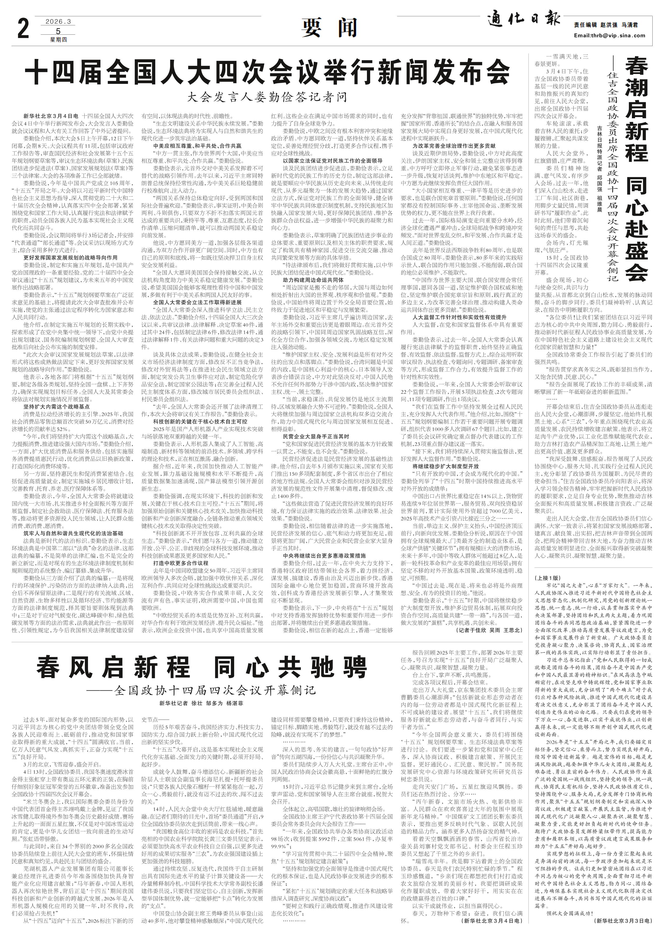 <div style='font-size: 22px!important;line-height: 34px!important;text-align: justify!important;color: #000!important'>春潮启新程 同心赴盛会</div><div style='font-size: 16px!important;line-height: 28px!important;text-align: justify;color: #777!important;margin-top: 20px;'>——住吉全国政协委员出席全国政协十四届四次会议开幕会侧记</div><div style='font-size: 14px!important;line-height: 22px!important;text-align: left!important;color: #777!important;margin-top: 20px;'>通化日报  2026-03-05</div><div><img id='paperImg' style='max-width: 100%;height: auto' src='//img.founderfx.cn/epaper/202603/05/a356f9ff65884ba9abd6c81ff1727274/2.jpg' alt='' class='page-img'/></div><p>吉林日报特派记者 邱国强 祖维晨</p><p>一雪满天地,三春景更妍。</p><p>3月4日下午,住吉全国政协委员带着基层一线的民声民意和助推振兴的真知灼见,前往人民大会堂,出席全国政协十四届四次会议开幕会。</p><p>车轮滚滚,承载着吉林人民的重托;步履铿锵,汇聚起共谋发展的力量。</p><p>人民大会堂外,红旗猎猎,庄严肃穆。</p><p>委员们精神饱满、意气风发,有序步入会场。过去一年,他们深入白山松水,走进工厂车间、社区街巷,用脚步丈量民情,用调研书写“履职作业”。此时此刻,他们带着沉甸甸的责任与思考,共赴这场春天的盛会。</p><p>会场内,灯光璀璨,气氛庄严。</p><p>15时,全国政协十四届四次会议隆重开幕。</p><p>盛会现场,初心与使命交织,共识与力量共振。从首都北京到白山松水,发展的脉动同频,奋斗的脚步同行。委员们凝神聆听、认真记录,在报告中明晰履职方向。</p><p>“各位委员!让我们紧密团结在以习近平同志为核心的中共中央周围,勠力同心、勇毅前行,推动新时代新征程人民政协事业高质量发展,为在中国特色社会主义道路上建设社会主义现代化国家贡献智慧和力量!”</p><p>全国政协常委会工作报告引起了委员们的强烈共鸣。</p><p>“报告贯穿求真务实之风,既彰显担当作为,又饱含民情、民意、民心。”</p><p>“报告全面展现了政协工作的丰硕成果,清晰擘画了新一年砥砺奋进的崭新蓝图。”</p><p>……</p><p>开幕会结束后,住吉全国政协委员丛连彪走出人民大会堂,心潮澎湃,步履坚定。他始终扎根黑土地、心系“三农”,今年重点围绕现代农业高质量发展、农民持续增收建言献策。他表示,将立足肉牛产业优势,以工业化思维赋能现代农业,助力吉林打造农产品精深加工高地,让黑土地产出更高价值、惠及更多群众。</p><p>“我深受鼓舞、倍感振奋。报告展现了人民政协围绕中心、服务大局、扎实践行全过程人民民主,充分彰显了政协委员为国履职、为民尽责的使命担当。”住吉全国政协委员冷向阳表示,将深入学习领会报告精神,牢牢把握新时代人民政协的履职要求,立足自身专业优势,聚焦推动吉林全面振兴和高质量发展,积极建言资政、广泛凝聚共识。</p><p>走出人民大会堂,住吉全国政协委员们信心满怀。大家一致表示,将紧扣国家发展战略部署,建真言、献良策、出实招,把吉林声音带到全国两会,把两会精神带回吉林大地,为奋力推动吉林高质量发展明显进位、全面振兴取得新突破凝聚人心、凝聚共识、凝聚智慧、凝聚力量。</p>