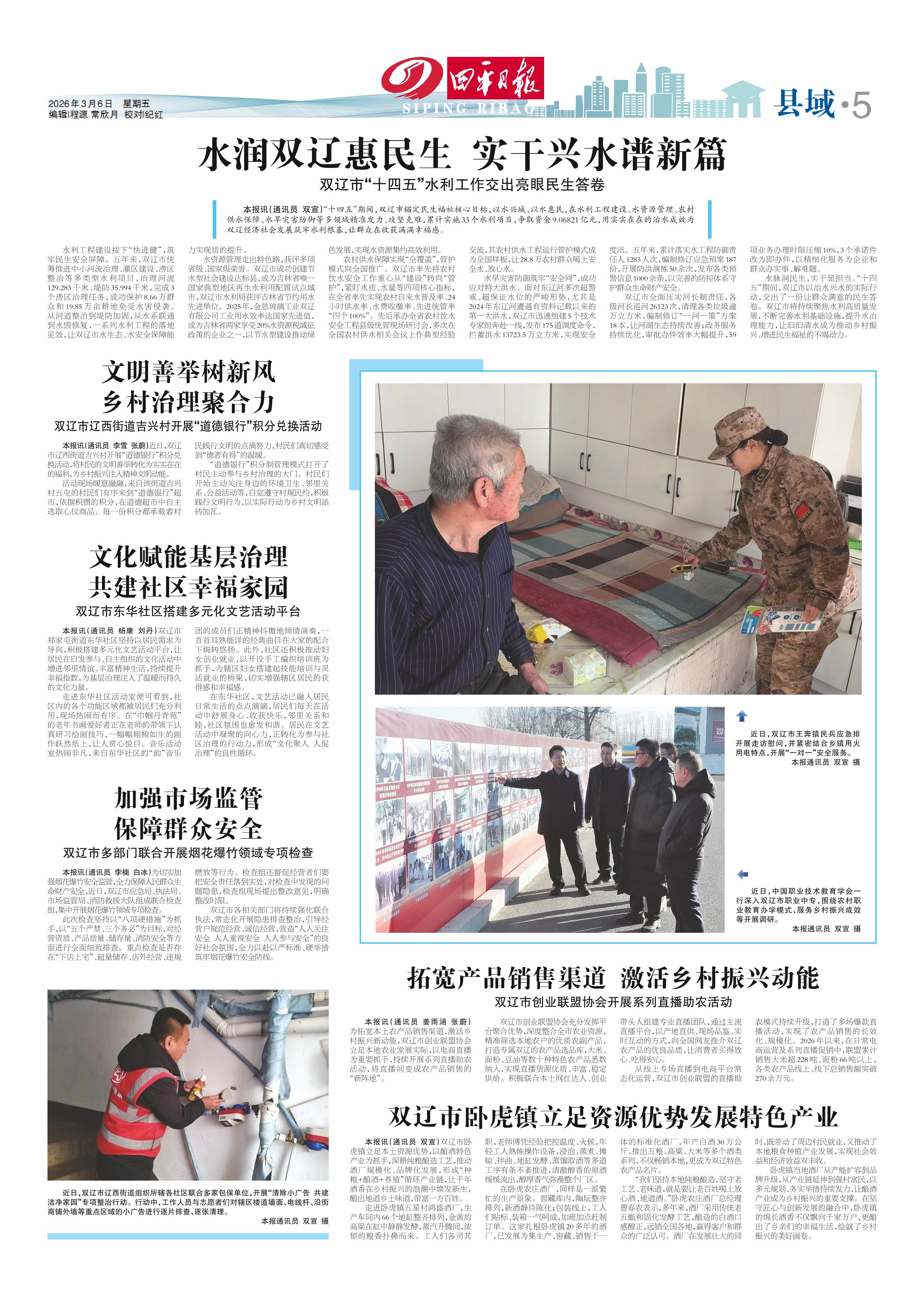 <div style='font-size: 22px!important;line-height: 34px!important;text-align: justify!important;color: #000!important'>双辽市卧虎镇立足资源优势发展特色产业</div><div style='font-size: 14px!important;line-height: 22px!important;text-align: left!important;color: #777!important;margin-top: 20px;'>四平日报  2026-03-06</div><div><img id='paperImg' style='max-width: 100%;height: auto' src='//img.founderfx.cn/epaper/202603/06/9bdbdfb0662846fd818717d1c0d43a18/5.jpg' alt='' class='page-img'/></div><p> 本报讯(通讯员 双宣)双辽市卧虎镇立足本土资源优势,以酿酒特色产业为抓手,深耕纯粮酿造工艺,推动酒厂规模化、品牌化发展,形成“种粮+酿酒+养殖”循环产业链,让千年酒香在乡村振兴的浪潮中焕发新生,酿出地道乡土味道,带富一方百姓。</p><p> 走进卧虎镇五星村鸿盛酒厂,生产车间内66个地缸整齐排列,金黄的高粱在缸中静静发酵,蒸汽升腾间,浓郁的粮香扑鼻而来。工人们各司其职,老师傅凭经验把控温度、火候,年轻工人熟练操作设备,浸泡、蒸煮、摊晾、拌曲、地缸发酵、蒸馏取酒等多道工序有条不紊推进,清澈醇香的原酒缓缓流出,醇厚香气弥漫整个厂区。</p><p> 在卧虎农庄酒厂,同样是一派繁忙的生产景象。窖藏库内,陶坛整齐排列,新酒静待陈化;包装线上,工人们贴标、装箱一气呵成,加班加点赶制订单。这家扎根卧虎镇20多年的酒厂,已发展为集生产、窖藏、销售于一体的标准化酒厂,年产白酒30万公斤,推出五粮、高粱、大米等多个酒类系列,不仅畅销本地,更成为双辽特色农产品名片。</p><p> “我们坚持本地纯粮酿造,坚守老工艺、老味道,就是要让老百姓喝上放心酒、地道酒。”卧虎农庄酒厂总经理曹春农表示,多年来,酒厂采用传统老五甑和固化发酵工艺,酿造的白酒口感醇正,远销全国各地,赢得客户和群众的广泛认可。酒厂在发展壮大的同时,既带动了周边村民就业,又推动了本地粮食种植产业发展,实现社会效益和经济效益双丰收。</p><p> 卧虎镇当地酒厂从产能扩容到品牌升级,从产业链延伸到强村富民,以多元规划、务实举措持续发力,让酿酒产业成为乡村振兴的重要支撑。在坚守匠心与创新发展的融合中,卧虎镇的绵长酒香不仅飘向千家万户,更酿出了乡亲们的幸福生活,绘就了乡村振兴的美好画卷。</p>