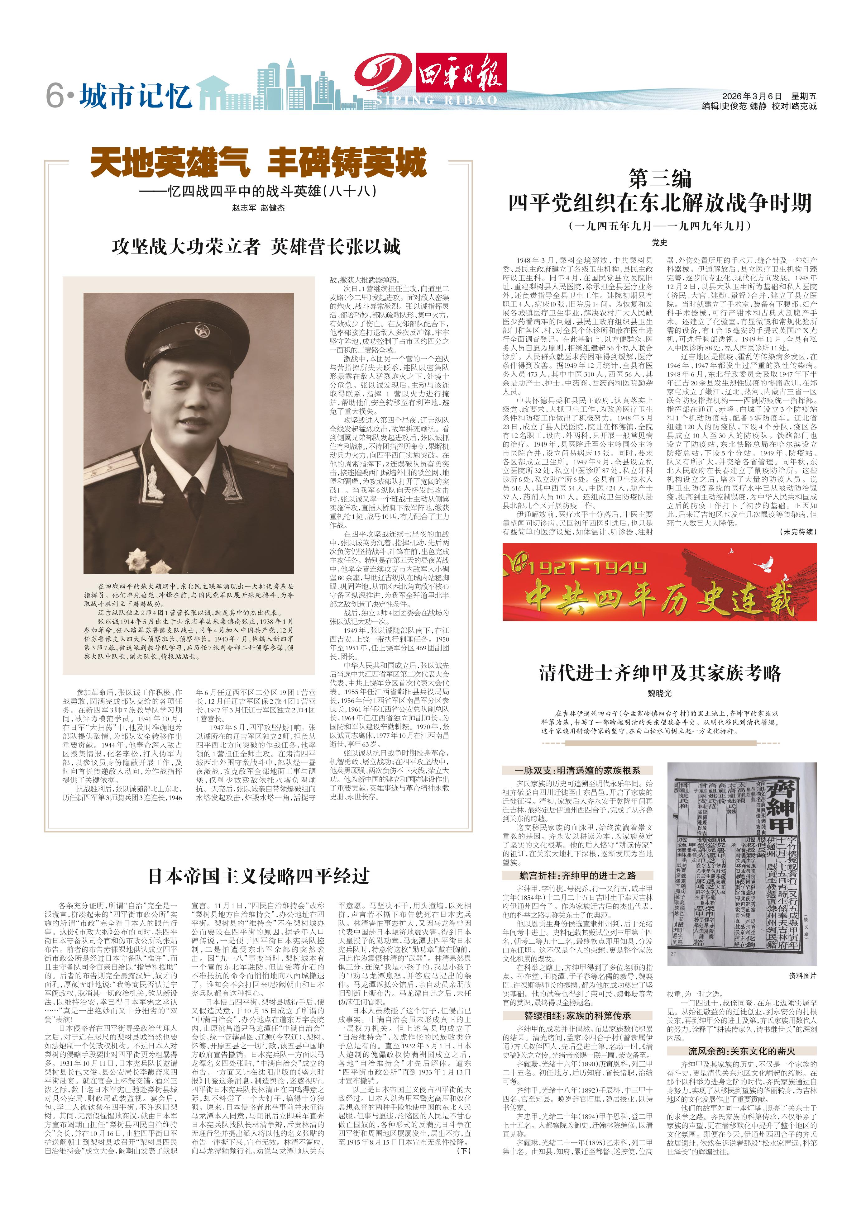 <div style='font-size: 22px!important;line-height: 34px!important;text-align: justify!important;color: #000!important'>第三编 四平党组织在东北解放战争时期</div><div style='font-size: 16px!important;line-height: 28px!important;text-align: justify;color: #777!important;margin-top: 20px;'>(一九四五年九月—一九四九年九月)</div><div style='font-size: 14px!important;line-height: 22px!important;text-align: left!important;color: #777!important;margin-top: 20px;'>四平日报  2026-03-06</div><div><img id='paperImg' style='max-width: 100%;height: auto' src='//img.founderfx.cn/epaper/202603/06/9bdbdfb0662846fd818717d1c0d43a18/6.jpg' alt='' class='page-img'/></div><p> 党史</p><p> 1948年3月,梨树全境解放,中共梨树县委、县民主政府建立了各级卫生机构,县民主政府设卫生科。同年4月,在国民党县立医院旧址,重建梨树县人民医院,除承担全县医疗业务外,还负责指导全县卫生工作。建院初期只有职工4人,病床l0张,旧院房14间。为恢复和发展各城镇医疗卫生事业,解决农村广大人民缺医少药看病难的问题,县民主政府组织县卫生部门和各区、村,对全县个体诊所和散在医生进行全面调查登记。在此基础上,以方便群众、医务人员自愿为原则,相继组建起56个私人联合诊所。人民群众就医求药困难得到缓解,医疗条件得到改善。据l949年12月统计,全县有医务人员473人,其中中医310人,西医56人,其余是助产士、护士、中药商、西药商和医院勤杂人员。</p><p> 中共怀德县委和县民主政府,认真落实上级党、政要求,大抓卫生工作,为改善医疗卫生条件和防疫工作做出了积极努力。1948年5月23日,成立了县人民医院,院址在怀德镇,全院有12名职工,设内、外两科,只开展一般常见病的治疗。1949年,县医院迁至公主岭同公主岭市医院合并,设立简易病床15张。同时,要求各区都成立卫生所。1949年9月,全县设立私立医院所32处,私立中医诊所87处,私立牙科诊所6处,私立助产所6处。全县有卫生技术人员616人,其中西医54人,中医424人,助产士37人,药剂人员101人。还组成卫生防疫队赴县北部几个区开展防疫工作。</p><p> 伊通解放前,医疗水平十分落后,中医主要靠望闻问切诊病,民国初年西医引进后,也只是有些简单的医疗设施,如体温计、听诊器、注射器、外伤处置所用的手术刀、缝合针及一些妇产科器械。伊通解放后,县立医疗卫生机构日臻完善,逐步向专业化、现代化方向发展。1948年12月2日,以县大队卫生所为基础和私人医院(济民、大宫、建勋、景铎)合并,建立了县立医院。当时就建立了手术室,装备有下腹部、妇产科手术器械,可行产钳术和古典式剖腹产手术。还建立了化验室,有显微镜和常规化验所需的设备,有1台15毫安的手提式英国产X光机,可进行胸部透视。1949年11月,全县有私人中医诊所88处,私人西医诊所11处。</p><p> 辽吉地区是鼠疫、霍乱等传染病多发区,在1946年、1947年都发生过严重的烈性传染病。1948年6月,东北行政委员会吸取1947年下半年辽吉20余县发生烈性鼠疫的惨痛教训,在郑家屯成立了嫩江、辽北、热河、内蒙古三省一区联合防疫指挥机构——西满防疫统一指挥部。指挥部在通辽、赤峰、白城子设立3个防疫站和1个机动防疫站,配备5辆防疫车。辽北省组建120人的防疫队,下设4个分队,疫区各县成立10人至30人的防疫队。铁路部门也设立了防疫站,东北铁路总局在哈尔滨设立防疫总站,下设5个分站。1949年,防疫站、队又有所扩大,并交给各省管理。同年秋,东北人民政府在长春建立了鼠疫防治所。这些机构设立之后,培养了大量的防疫人员。说明卫生防疫系统的医疗水平已从被动防治鼠疫,提高到主动控制鼠疫,为中华人民共和国成立后的防疫工作打下了初步的基础。正因如此,后来辽吉地区也发生几次鼠疫等传染病,但死亡人数已大大降低。</p><p> (未完待续)</p>