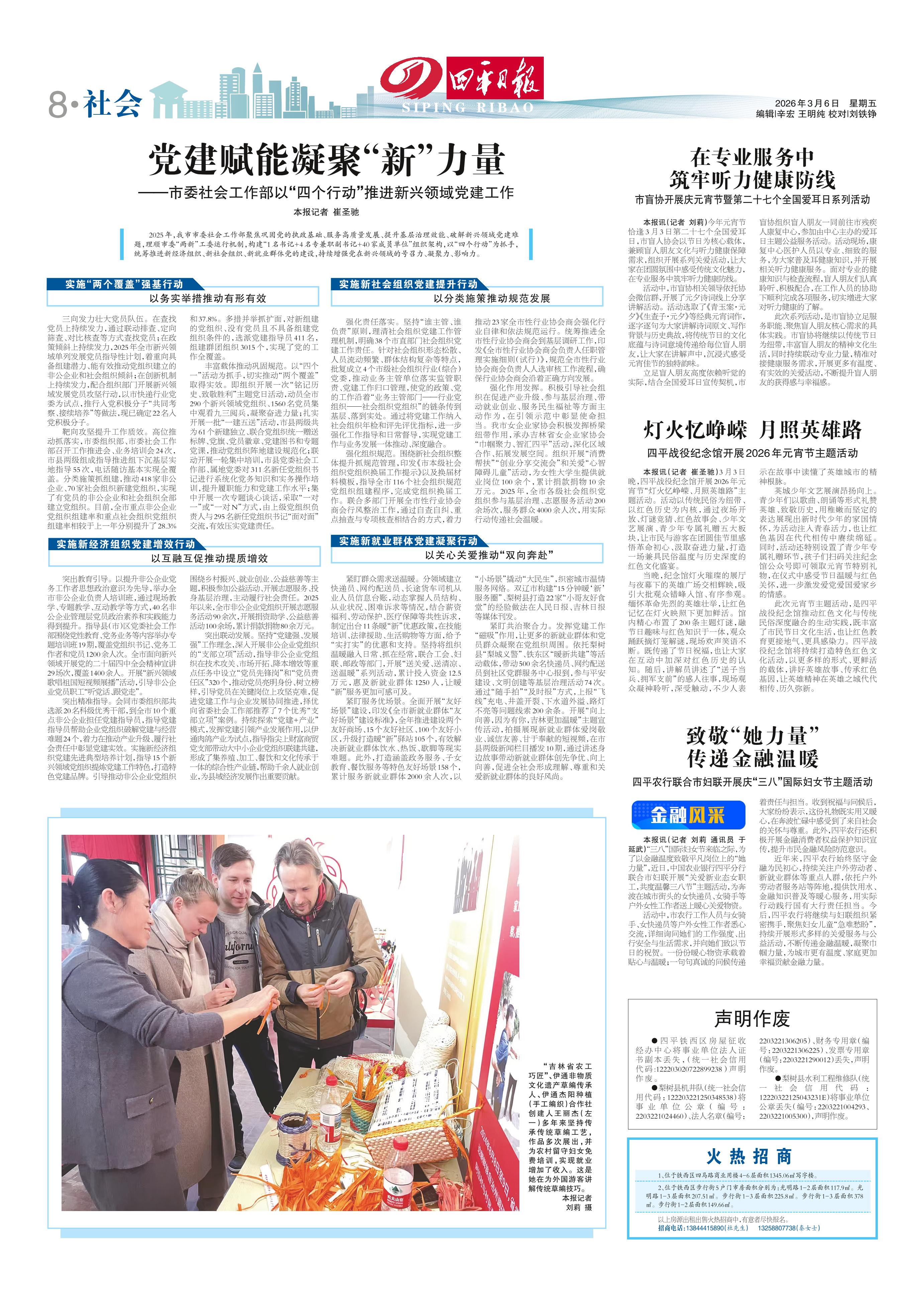 <div style='font-size: 22px!important;line-height: 34px!important;text-align: justify!important;color: #000!important'>在专业服务中 筑牢听力健康防线</div><div style='font-size: 16px!important;line-height: 28px!important;text-align: justify;color: #777!important;margin-top: 20px;'>市盲协开展庆元宵节暨第二十七个全国爱耳日系列活动</div><div style='font-size: 14px!important;line-height: 22px!important;text-align: left!important;color: #777!important;margin-top: 20px;'>四平日报  2026-03-06</div><div><img id='paperImg' style='max-width: 100%;height: auto' src='//img.founderfx.cn/epaper/202603/06/9bdbdfb0662846fd818717d1c0d43a18/8.jpg' alt='' class='page-img'/></div><p> 本报讯(记者 刘莉)今年元宵节恰逢3月3日第二十七个全国爱耳日,市盲人协会以节日为核心载体,兼顾盲人朋友文化与听力健康保障需求,组织开展系列关爱活动,让大家在团圆氛围中感受传统文化魅力,在专业服务中筑牢听力健康防线。</p><p> 活动中,市盲协相关领导依托协会微信群,开展了元夕诗词线上分享讲解活动。活动选取了《青玉案·元夕》《生查子·元夕》等经典元宵词作,逐字逐句为大家讲解诗词原文、写作背景与历史典故,将传统节日的文化底蕴与诗词意境传递给每位盲人朋友,让大家在讲解声中,沉浸式感受元宵佳节的独特韵味。</p><p> 立足盲人朋友高度依赖听觉的实际,结合全国爱耳日宣传契机,市盲协组织盲人朋友一同前往市残疾人康复中心,参加由中心主办的爱耳日主题公益服务活动。活动现场,康复中心医护人员以专业、细致的服务,为大家普及耳健康知识,并开展相关听力健康服务。面对专业的健康知识与检查流程,盲人朋友们认真聆听、积极配合,在工作人员的协助下顺利完成各项服务,切实增进大家对听力健康的了解。</p><p> 此次系列活动,是市盲协立足服务职能、聚焦盲人朋友核心需求的具体实践。市盲协将继续以传统节日为纽带,丰富盲人朋友的精神文化生活,同时持续联动专业力量,精准对接健康服务需求,开展更多有温度、有实效的关爱活动,不断提升盲人朋友的获得感与幸福感。</p>