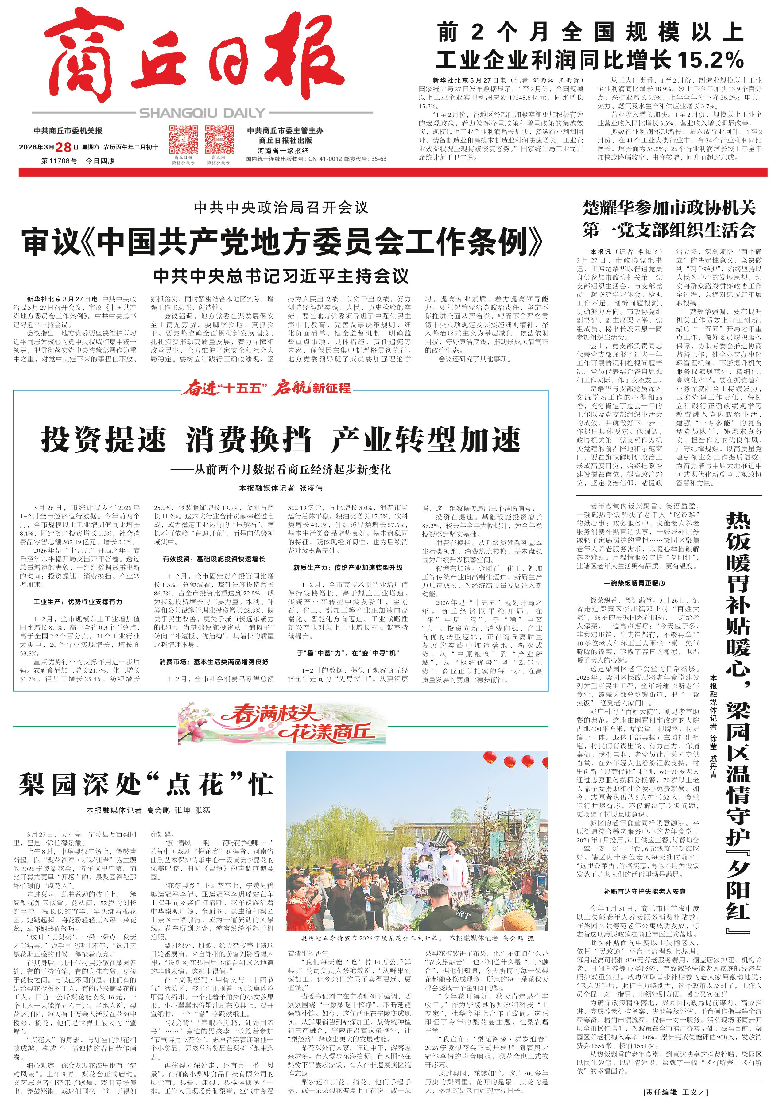 <div style='font-size: 22px!important;line-height: 34px!important;text-align: justify!important;color: #000!important'>投资提速 消费换挡 产业转型加速</div><div style='font-size: 16px!important;line-height: 28px!important;text-align: justify;color: #777!important;margin-top: 20px;'>——从前两个月数据看商丘经济起步新变化</div><div style='font-size: 14px!important;line-height: 22px!important;text-align: left!important;color: #777!important;margin-top: 20px;'>商丘日报云阅读  本报融媒体记者 张凌伟  2026-03-28</div><div><img id='paperImg' style='max-width: 100%;height: auto' src='//img.founderfx.cn/epaper/202603/28/50f0769f71144f7abc42b42489492fc3/1.jpg' alt='' class='page-img'/></div><p> 3月26日,市统计局发布2026年1-2月全市经济运行数据。今年前两个月,全市规模以上工业增加值同比增长8.1%,固定资产投资增长1.3%,社会消费品零售总额302.19亿元、增长3.0%。</p><p> 2026年是“十五五”开局之年。商丘经济以平稳开局交出开年答卷。透过总量增速的表象,一组组数据透露出新的动向:投资提速、消费换挡、产业转型加速。</p><p> 工业生产:优势行业支撑有力</p><p> 1-2月,全市规模以上工业增加值同比增长8.1%,高于全省0.3个百分点,高于全国2.2个百分点。34个工业行业大类中,20个行业实现增长,增长面58.8%。</p><p> 重点优势行业的支撑作用进一步增强。农副食品加工增长21.7%,化工增长31.7%,铝加工增长25.4%,纺织增长25.2%,服装服饰增长19.9%,金刚石增长11.2%。这六大行业合计贡献率超过七成,成为稳定工业运行的“压舱石”。增长不再依赖“普遍开花”,而是向优势领域集中。</p><p> 有效投资:基础设施投资快速增长</p><p> 1-2月,全市固定资产投资同比增长1.3%。分领域看,基础设施投资增长86.3%,占全市投资比重达到22.5%,成为拉动投资增长的主要力量。水利、环境和公共设施管理业投资增长28.9%,既关乎民生改善,更关乎城市长远承载力的提升。当基础设施投资从“铺摊子”转向“补短板、优结构”,其增长的质量远超增速本身。</p><p> 消费市场:基本生活类商品增势良好</p><p> 1-2月,全市社会消费品零售总额302.19亿元,同比增长3.0%,消费市场运行总体平稳。粮油类增长17.3%,饮料类增长40.0%,针织纺品类增长57.6%,基本生活类商品增势良好。基本盘稳固的特征,既体现经济韧性,也为后续消费升级积蓄基础。</p><p> 新质生产力:传统产业加速转型升级</p><p> 1-2月,全市高技术制造业增加值保持较快增长,高于规上工业增速。传统产业在转型中焕发新生,金刚石、化工、铝加工等产业正加速向高端化、智能化方向迈进。工业战略性新兴产业对规上工业增长的贡献率持续提升。</p><p> 于“稳”中蓄“力”,在“变”中寻“机”</p><p> 1-2月的数据,提供了观察商丘经济全年走向的“先导窗口”。从更深层看,这一组数据传递出三个清晰信号:</p><p> 投资在提速。基础设施投资增长86.3%,较去年全年大幅提升,为全年稳投资奠定坚实基础。</p><p> 消费在换挡。从升级类领跑到基本生活类领跑,消费热点转换,基本盘稳固为后续升级积蓄空间。</p><p> 转型在加速。金刚石、化工、铝加工等传统产业向高端化迈进,新质生产力加速成长,为经济高质量发展注入新动能。</p><p> 2026年是“十五五”规划开局之年。商丘经济以平稳开局,在“平”中见“深”、于“稳”中蓄“力”。投资向新、消费向稳、产业向优的转型逻辑,正在商丘高质量发展的实践中加速落地、渐次成势。从“中原粮仓”到“产业新城”,从“枢纽优势”到“动能优势”,商丘正以扎实的每一步,在高质量发展的赛道上稳步前行。</p>