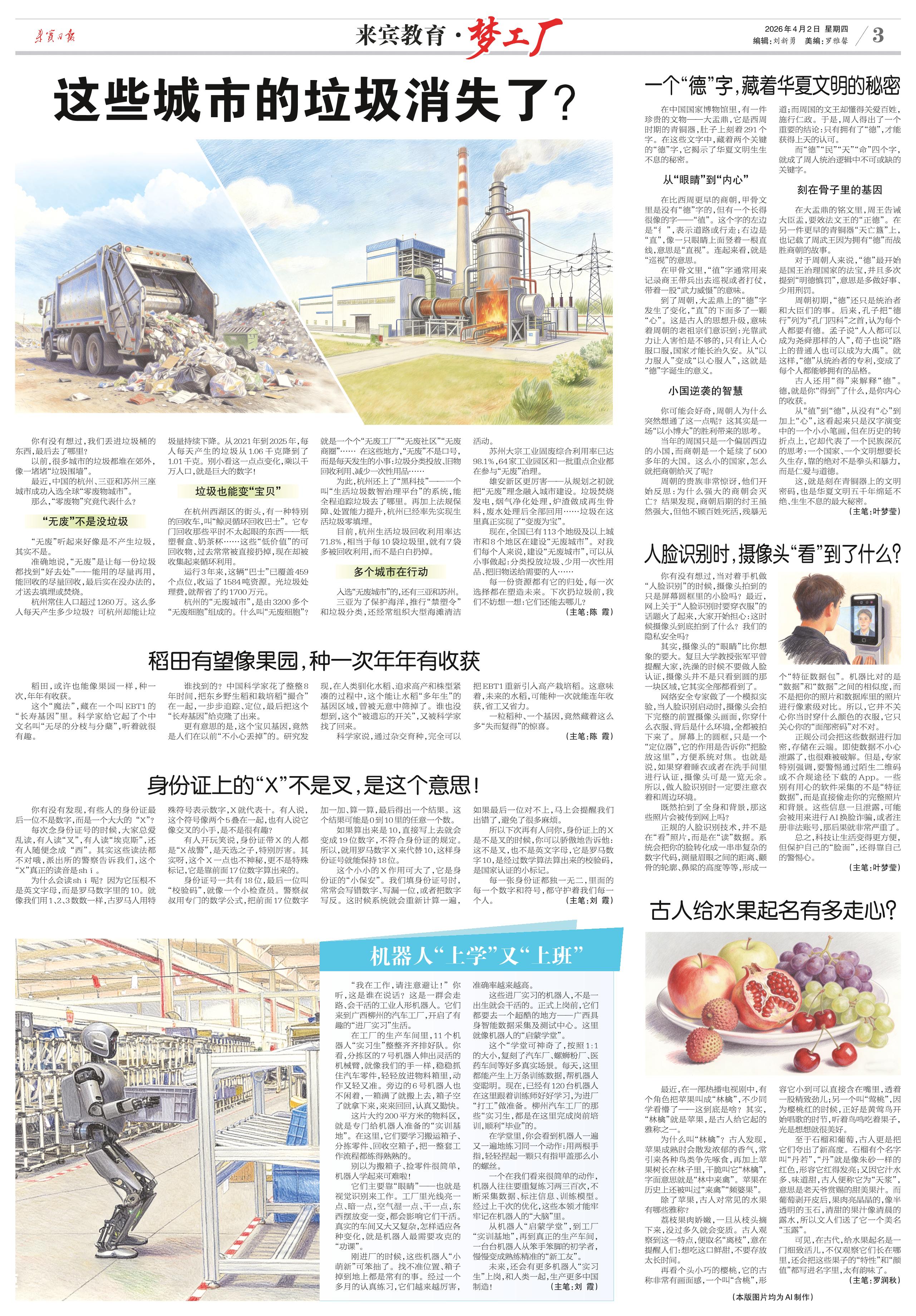<div style='font-size: 22px!important;line-height: 34px!important;text-align: justify!important;color: #000!important'>这些城市的垃圾消失了?</div><div style='font-size: 14px!important;line-height: 22px!important;text-align: left!important;color: #777!important;margin-top: 20px;'>来宾日报  2026-04-02</div><div><img id='paperImg' style='max-width: 100%;height: auto' src='//img.founderfx.cn/epaper/202604/02/0520b69b4da74b5bbeed0e9a8a4bca3b/3.jpg' alt='' class='page-img'/></div><div style='font-size: 14px!important;line-height: 22px!important;text-align: center!important;color: #777!important;'><img src='//img.founderfx.cn/epaper/202604/02/0520b69b4da74b5bbeed0e9a8a4bca3b/03/倒垃圾_s.jpg'style='display: block!important;margin: auto!important;max-width: 100%!important;'/> AI制图<img src='//img.founderfx.cn/epaper/202604/02/0520b69b4da74b5bbeed0e9a8a4bca3b/03/垃圾焚烧_s.jpg'style='display: block!important;margin: auto!important;max-width: 100%!important;'/> AI制图</div><p> 你有没有想过,我们丢进垃圾桶的东西,最后去了哪里?</p><p> 以前,很多城市的垃圾都堆在郊外,像一堵堵“垃圾围墙”。</p><p> 最近,中国的杭州、三亚和苏州三座城市成功入选全球“零废物城市”。</p><p> 那么,“零废物”究竟代表什么?</p><p> “无废”不是没垃圾 </p><p> “无废”听起来好像是不产生垃圾,其实不是。</p><p> 准确地说,“无废”是让每一份垃圾都找到“好去处”——能用的尽量再用,能回收的尽量回收,最后实在没办法的,才送去填埋或焚烧。</p><p> 杭州常住人口超过1260万。这么多人每天产生多少垃圾?可杭州却能让垃圾量持续下降。从2021年到2025年,每人每天产生的垃圾从1.06千克降到了1.01千克。别小看这一点点变化,乘以千万人口,就是巨大的数字!</p><p> 垃圾也能变“宝贝” </p><p> 在杭州西湖区的街头,有一种特别的回收车,叫“鲸灵循环回收巴士”。它专门回收那些平时不太起眼的东西——纸塑餐盒、奶茶杯……这些“低价值”的可回收物,过去常常被直接扔掉,现在却被收集起来循环利用。</p><p> 运行3年来,这辆“巴士”已覆盖459个点位,收运了1584吨资源。光垃圾处理费,就帮省了约1700万元。</p><p> 杭州的“无废城市”,是由3200多个“无废细胞”组成的。什么叫“无废细胞”?就是一个个“无废工厂”“无废社区”“无废商圈”…… 在这些地方,“无废”不是口号,而是每天发生的小事:垃圾分类投放、旧物回收利用、减少一次性用品……</p><p> 为此,杭州还上了“黑科技”——一个叫“生活垃圾数智治理平台”的系统,能全程追踪垃圾去了哪里。再加上法规保障、处置能力提升,杭州已经率先实现生活垃圾零填埋。</p><p> 目前,杭州生活垃圾回收利用率达71.8%,相当于每10袋垃圾里,就有7袋多被回收利用,而不是白白扔掉。</p><p> 多个城市在行动 </p><p> 入选“无废城市”的,还有三亚和苏州。</p><p> 三亚为了保护海洋,推行“禁塑令”和垃圾分类,还经常组织大型海滩清洁活动。</p><p> 苏州大宗工业固废综合利用率已达98.1%,64家工业园区和一批重点企业都在参与“无废”治理。</p><p> 雄安新区更厉害——从规划之初就把“无废”理念融入城市建设。垃圾焚烧发电,烟气净化处理,炉渣做成再生骨料,废水处理后全部回用……垃圾在这里真正实现了“变废为宝”。</p><p> 现在,全国已有113个地级及以上城市和8个地区在建设“无废城市”。对我们每个人来说,建设“无废城市”,可以从小事做起:分类投放垃圾、少用一次性用品、把旧物送给需要的人……</p><p> 每一份资源都有它的归处,每一次选择都在塑造未来。下次扔垃圾前,我们不妨想一想:它们还能去哪儿?</p><p> (主笔:陈 霞)</p>