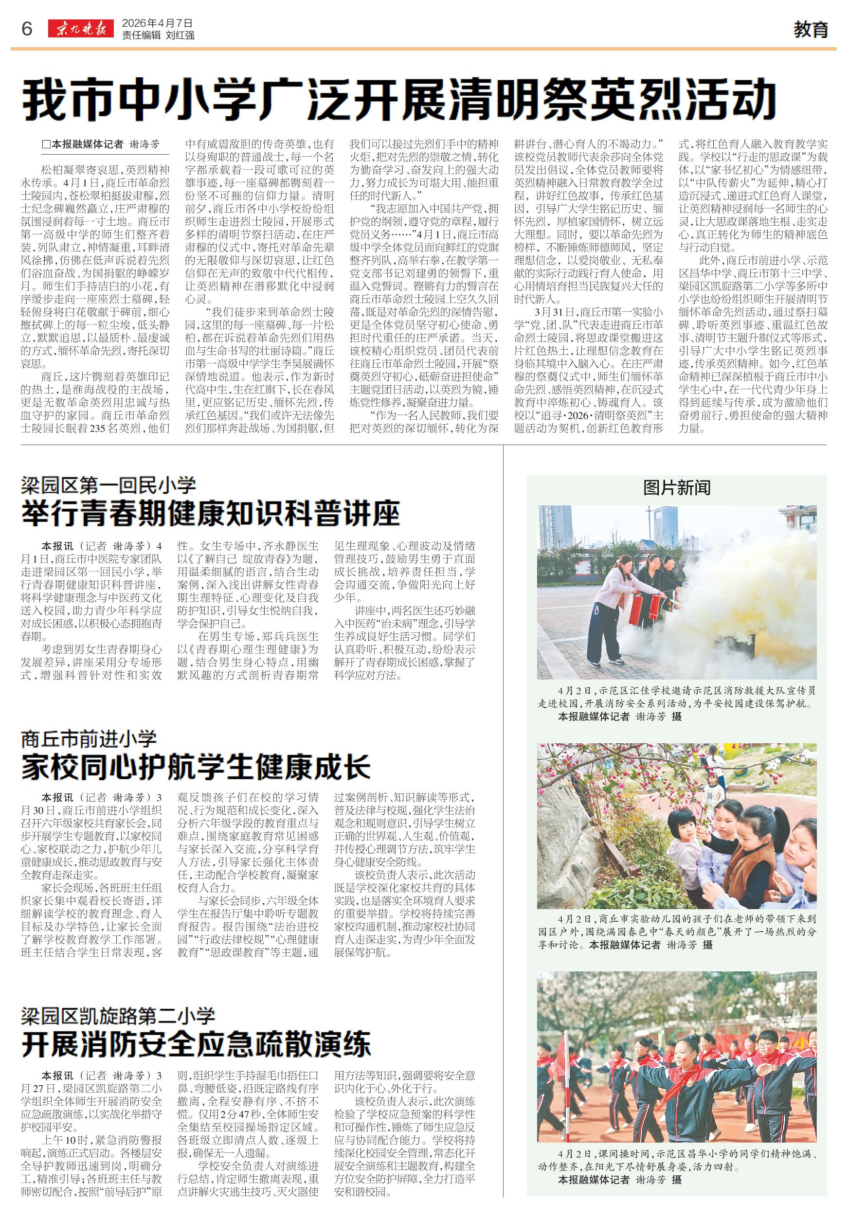 <div style='font-size: 22px!important;line-height: 34px!important;text-align: justify!important;color: #000!important'>我市中小学广泛开展清明祭英烈活动</div><div style='font-size: 14px!important;line-height: 22px!important;text-align: left!important;color: #777!important;margin-top: 20px;'>京九晚报云阅读  □本报融媒体记者 谢海芳  2026-04-07</div><div><img id='paperImg' style='max-width: 100%;height: auto' src='//img.founderfx.cn/epaper/202604/06/765082a0c4cd4e199eab64982377d8c2/6.jpg' alt='' class='page-img'/></div><p> 松柏凝翠寄哀思,英烈精神永传承。4月1日,商丘市革命烈士陵园内,苍松翠柏挺拔肃穆,烈士纪念碑巍然矗立,庄严肃穆的氛围浸润着每一寸土地。商丘市第一高级中学的师生们整齐着装,列队肃立,神情凝重,耳畔清风徐拂,仿佛在低声诉说着先烈们浴血奋战、为国捐躯的峥嵘岁月。师生们手持洁白的小花,有序缓步走向一座座烈士墓碑,轻轻俯身将白花敬献于碑前,细心擦拭碑上的每一粒尘埃,低头静立,默默追思,以最质朴、最虔诚的方式,缅怀革命先烈,寄托深切哀思。</p><p> 商丘,这片镌刻着英雄印记的热土,是淮海战役的主战场,更是无数革命英烈用忠诚与热血守护的家园。商丘市革命烈士陵园长眠着235名英烈,他们中有威震敌胆的传奇英雄,也有以身殉职的普通战士,每一个名字都承载着一段可歌可泣的英雄事迹,每一座墓碑都镌刻着一份坚不可摧的信仰力量。清明前夕,商丘市各中小学校纷纷组织师生走进烈士陵园,开展形式多样的清明节祭扫活动,在庄严肃穆的仪式中,寄托对革命先辈的无限敬仰与深切哀思,让红色信仰在无声的致敬中代代相传,让英烈精神在潜移默化中浸润心灵。</p><p> “我们徒步来到革命烈士陵园,这里的每一座墓碑、每一片松柏,都在诉说着革命先烈们用热血与生命书写的壮丽诗篇。”商丘市第一高级中学学生李昊展满怀深情地说道。他表示,作为新时代高中生,生在红旗下,长在春风里,更应铭记历史、缅怀先烈,传承红色基因。“我们或许无法像先烈们那样奔赴战场、为国捐躯,但我们可以接过先烈们手中的精神火炬,把对先烈的崇敬之情,转化为勤奋学习、奋发向上的强大动力,努力成长为可堪大用、能担重任的时代新人。”</p><p> “我志愿加入中国共产党,拥护党的纲领,遵守党的章程,履行党员义务……”4月1日,商丘市高级中学全体党员面向鲜红的党旗整齐列队,高举右拳,在教学第一党支部书记刘建勇的领誓下,重温入党誓词。铿锵有力的誓言在商丘市革命烈士陵园上空久久回荡,既是对革命先烈的深情告慰,更是全体党员坚守初心使命、勇担时代重任的庄严承诺。当天,该校精心组织党员、团员代表前往商丘市革命烈士陵园,开展“祭奠英烈守初心,砥砺奋进担使命”主题党团日活动,以英烈为镜,锤炼党性修养,凝聚奋进力量。</p><p> “作为一名人民教师,我们要把对英烈的深切缅怀,转化为深耕讲台、潜心育人的不竭动力。”该校党员教师代表余莎向全体党员发出倡议,全体党员教师要将英烈精神融入日常教育教学全过程,讲好红色故事,传承红色基因,引导广大学生铭记历史、缅怀先烈,厚植家国情怀,树立远大理想。同时,要以革命先烈为榜样,不断锤炼师德师风,坚定理想信念,以爱岗敬业、无私奉献的实际行动践行育人使命,用心用情培育担当民族复兴大任的时代新人。</p><p> 3月31日,商丘市第一实验小学“党、团、队”代表走进商丘市革命烈士陵园,将思政课堂搬进这片红色热土,让理想信念教育在身临其境中入脑入心。在庄严肃穆的祭奠仪式中,师生们缅怀革命先烈、感悟英烈精神,在沉浸式教育中淬炼初心、铸魂育人。该校以“追寻·2026·清明祭英烈”主题活动为契机,创新红色教育形式,将红色育人融入教育教学实践。学校以“行走的思政课”为载体,以“家书忆初心”为情感纽带,以“中队传薪火”为延伸,精心打造沉浸式、递进式红色育人课堂,让英烈精神浸润每一名师生的心灵,让大思政课落地生根、走实走心,真正转化为师生的精神底色与行动自觉。</p><p> 此外,商丘市前进小学、示范区昌华中学、商丘市第十三中学、梁园区凯旋路第二小学等多所中小学也纷纷组织师生开展清明节缅怀革命先烈活动,通过祭扫墓碑、聆听英烈事迹、重温红色故事、清明节主题升旗仪式等形式,引导广大中小学生铭记英烈事迹,传承英烈精神。如今,红色革命精神已深深植根于商丘市中小学生心中,在一代代青少年身上得到延续与传承,成为激励他们奋勇前行、勇担使命的强大精神力量。</p>