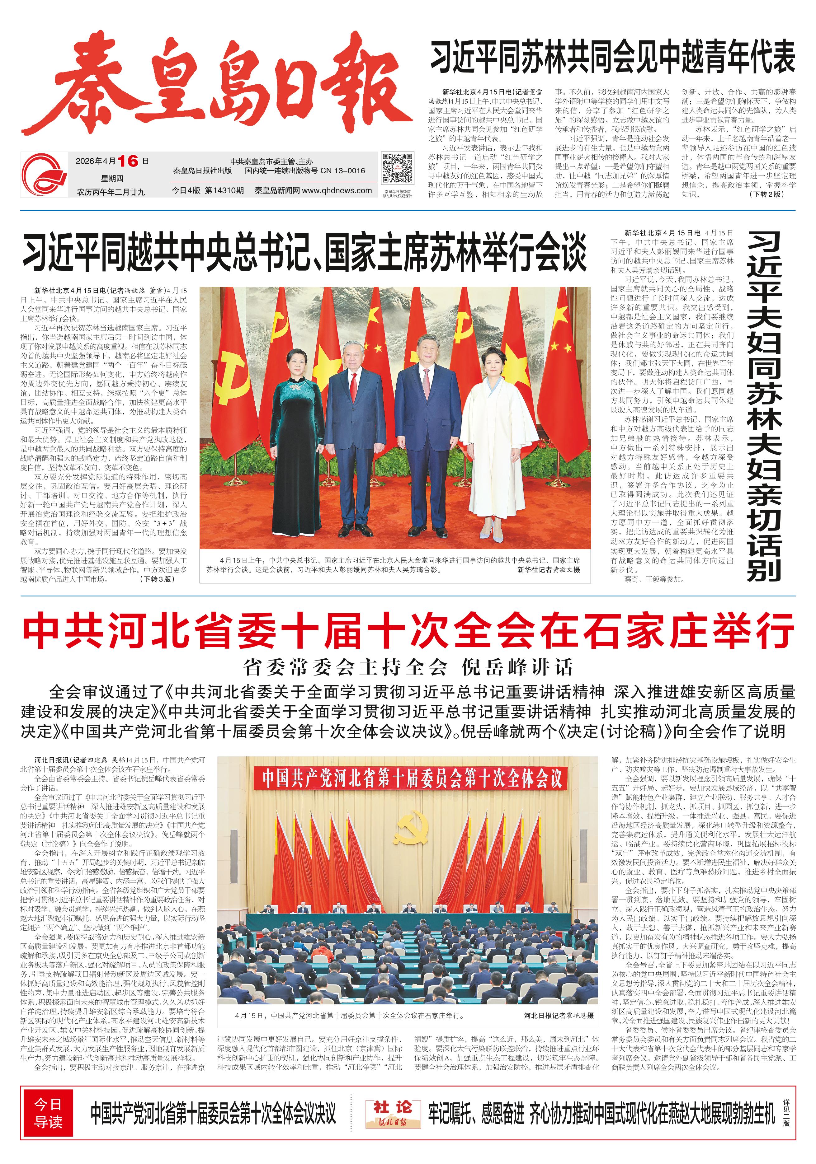 <img src="//img.founderfx.cn/epaper/202604/16/97b9b79d93b44994bc62796a684d7e67/01/5338420_rbzt_1776289654494_s.jpg" alt="" data-href="//img.founderfx.cn/epaper/202604/16/97b9b79d93b44994bc62796a684d7e67/01/5338420_rbzt_1776289654494_s.jpg" style=""> 4月15日上午,中共中央总书记、国家主席习近平在北京人民大会堂同来华进行国事访问的越共中央总书记、国家主席苏林举行会谈。这是会谈前,习近平和夫人彭丽媛同苏林和夫人吴芳璃合影。 <strong> </strong>