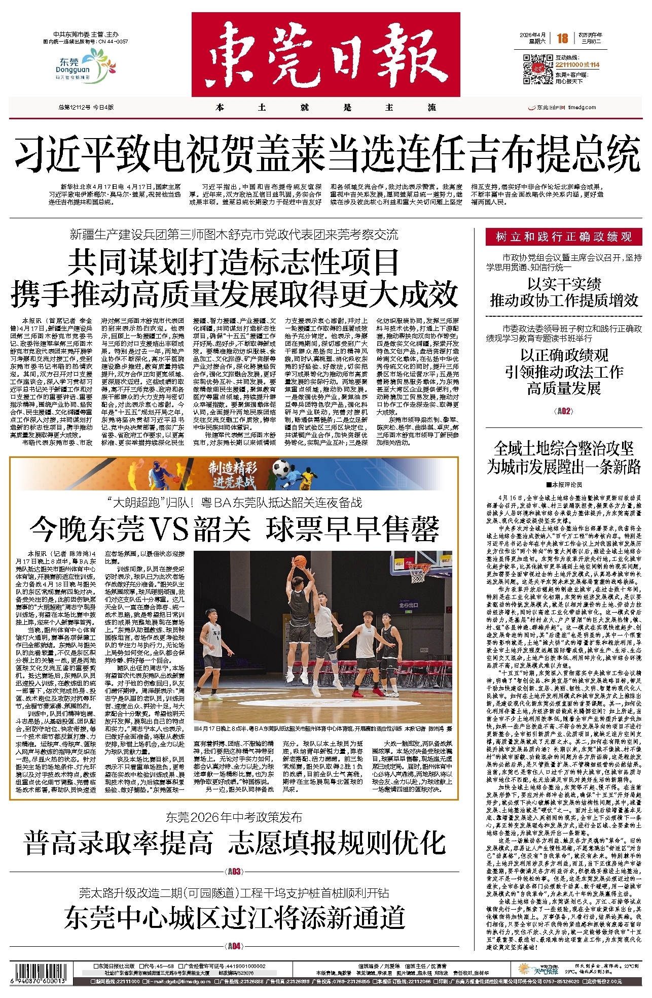 <div style='font-size: 22px!important;line-height: 34px!important;text-align: justify!important;color: #000!important'>习近平致电祝贺盖莱当选连任吉布提总统</div><div style='font-size: 14px!important;line-height: 22px!important;text-align: left!important;color: #777!important;margin-top: 20px;'>东莞日报  新华社北京4月17日电  2026-04-18</div><div><img id='paperImg' style='max-width: 100%;height: auto' src='//img.founderfx.cn/epaper/202604/18/7d79e9c8babd45f6b3538b7cd98dd753/1.jpg' alt='' class='page-img'/></div><p> </p><p> 4月17日,国家主席习近平致电伊斯梅尔·奥马尔·盖莱,祝贺他当选连任吉布提共和国总统。</p><p> 习近平指出,中国和吉布提传统友谊深厚。近年来,双方政治互信日益巩固,务实合作成果丰硕。盖莱总统长期致力于促进中吉友好和各领域交流合作,我对此表示赞赏。我高度重视中吉关系发展,愿同盖莱总统一道努力,继续在涉及彼此核心利益和重大关切问题上坚定相互支持,落实好中非合作论坛北京峰会成果,不断丰富中吉全面战略伙伴关系内涵,更好造福两国人民。</p>