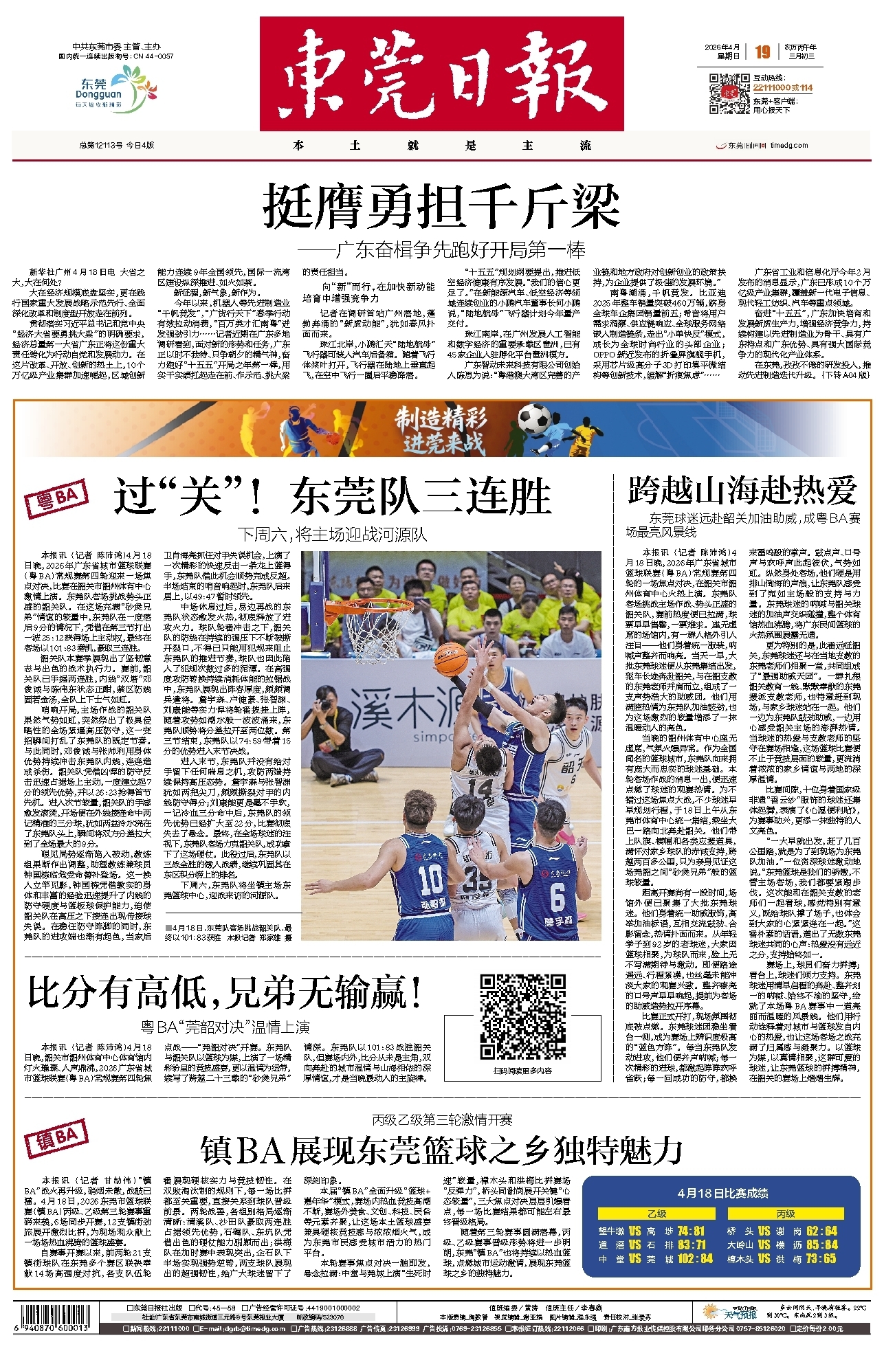 <div style='font-size: 22px!important;line-height: 34px!important;text-align: justify!important;color: #000!important'>跨越山海赴热爱</div><div style='font-size: 16px!important;line-height: 28px!important;text-align: justify;color: #777!important;margin-top: 20px;'>东莞球迷远赴韶关加油助威,成粤BA赛场最亮风景线</div><div style='font-size: 14px!important;line-height: 22px!important;text-align: left!important;color: #777!important;margin-top: 20px;'>东莞日报  记者 陈沛鸿  2026-04-19</div><div><img id='paperImg' style='max-width: 100%;height: auto' src='//img.founderfx.cn/epaper/202604/19/1e539cb5e2d94fd2ba808e860bdb0f69/1.jpg' alt='' class='page-img'/></div><p> 本报讯 4月18日晚,2026年广东省城市篮球联赛(粤BA)常规赛第四轮的一场焦点对决,在韶关市韶州体育中心火热上演。东莞队客场挑战主场作战、势头正盛的韶关队,赛前热度便已拉满,球票早早售罄,一票难求。座无虚席的场馆内,有一群人格外引人注目——他们身着统一服装,呐喊声整齐而响亮。当天一早,大批东莞球迷便从东莞集结出发,驱车长途奔赴韶关,与在韶支教的东莞老师并肩而立,组成了一支声势浩大的助威团。他们用满腔热情为东莞队加油鼓劲,也为这场激烈的较量增添了一抹温暖动人的亮色。</p><p> 当晚的韶州体育中心座无虚席,气氛火爆异常。作为全国闻名的篮球城市,东莞队向来拥有庞大而忠实的球迷基础。本轮客场作战的消息一出,便迅速点燃了球迷的观赛热情。为不错过这场焦点大战,不少球迷早早规划行程,于18日上午从东莞市体育中心统一集结,乘坐大巴一路向北奔赴韶关。他们带上队旗、横幅和各类应援道具,满怀对家乡球队的赤诚支持,跨越两百多公里,只为亲身见证这场莞韶之间“砂煲兄弟”般的篮球较量。</p><p> 距离开赛尚有一段时间,场馆外便已聚集了大批东莞球迷。他们身着统一助威服饰,高举加油标语,互相交流鼓劲、合影留念,热情扑面而来。从年轻学子到92岁的老球迷,大家因篮球相聚,为球队而来,脸上无不写满期待与激动。即便路途遥远、行程紧凑,也丝毫未能冲淡大家的观赛兴致。整齐嘹亮的口号声早早响起,提前为客场的助威造势拉开序幕。</p><p> 比赛正式开打,现场氛围彻底被点燃。东莞球迷团稳坐看台一侧,成为赛场上辨识度极高的“蓝色方阵”。每当东莞队发动进攻,他们便齐声呐喊;每一次精彩的进球,都激起阵阵欢呼雀跃;每一回成功的防守,都换来雷鸣般的掌声。鼓点声、口号声与欢呼声此起彼伏,气势如虹。纵然身处客场,他们硬是用排山倒海的声浪,让东莞队感受到了宛如主场般的支持与力量。东莞球迷的呐喊与韶关球迷的加油声交织碰撞,整个体育馆热血沸腾,将广东民间篮球的火热氛围展露无遗。</p><p> 更为特别的是,此番远征韶关,东莞球迷还与在当地支教的东莞老师们相聚一堂,共同组成了“最强助威天团”。一群扎根韶关教育一线、默默奉献的东莞援派支教老师,也特意赶到现场,与家乡球迷站在一起。他们一边为东莞队鼓劲助威,一边用心感受韶关主场的澎湃热情。当球迷的热爱与支教老师的坚守在赛场相逢,这场篮球比赛便不止于竞技层面的较量,更流淌着浓浓的家乡情谊与两地的深厚温情。</p><p> 比赛间隙,十位身着国家级非遗“香云纱”服饰的球迷还集体起舞,表演了《心愿便利贴》,为赛事助兴,更添一抹独特的人文亮色。</p><p> “一大早就出发,赶了几百公里路,就是为了到现场为东莞队加油。”一位资深球迷激动地说,“东莞篮球是我们的骄傲,不管主场客场,我们都要紧跟步伐。这次能和在韶关支教的老师们一起看球,感觉特别有意义,既给球队撑了场子,也体会到大家的心紧紧连在一起。”这番朴素的话语,道出了无数东莞球迷共同的心声:热爱没有远近之分,支持始终如一。</p><p> 赛场上,球员们奋力拼搏;看台上,球迷们倾力支持。东莞球迷用清早启程的奔赴、整齐划一的呐喊、始终不渝的坚守,绘就了本场粤BA赛事中一道亮丽而温暖的风景线。他们用行动诠释着对城市与篮球发自内心的热爱,也让这场客场之战充满了归属感与凝聚力。以篮球为媒,以真情相聚,这群可爱的球迷,让东莞篮球的拼搏精神,在韶关的赛场上熠熠生辉。</p>