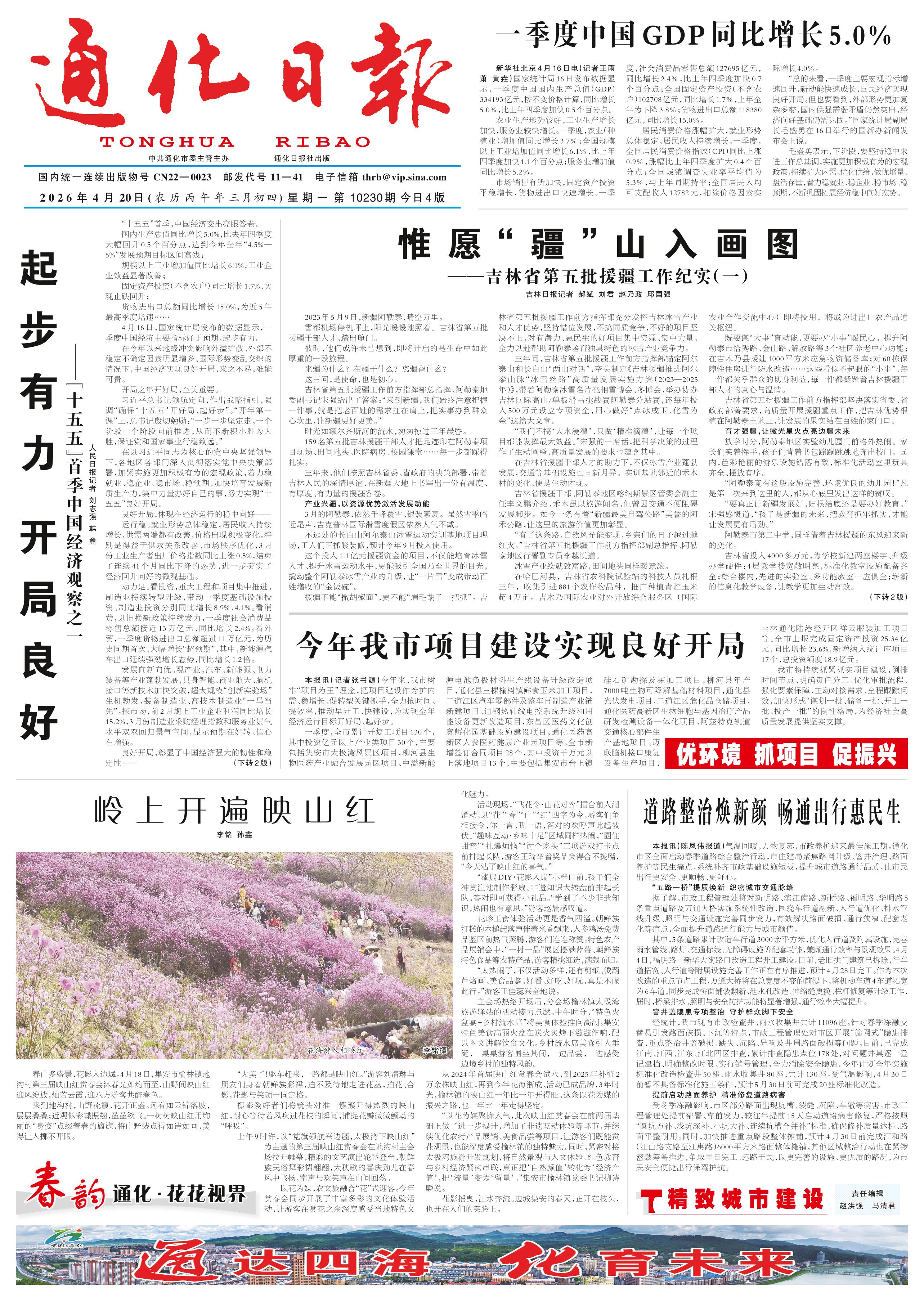 <div style='font-size: 22px!important;line-height: 34px!important;text-align: justify!important;color: #000!important'>今年我市项目建设实现良好开局</div><div style='font-size: 14px!important;line-height: 22px!important;text-align: left!important;color: #777!important;margin-top: 20px;'>通化日报  2026-04-20</div><div><img id='paperImg' style='max-width: 100%;height: auto' src='//img.founderfx.cn/epaper/202604/20/fc44bbe81d9a47c69e8d7690cdb0f723/1.jpg' alt='' class='page-img'/></div><p>本报讯(记者张书源)今年来,我市树牢“项目为王”理念,把项目建设作为扩内需、稳增长、促转型关键抓手,全力抢时间、提效率,推动早开工、快建设,为实现全年经济运行目标开好局、起好步。</p><p>一季度,全市累计开复工项目130个,其中投资亿元以上产业类项目30个,主要包括集安市太极湾风景区项目,柳河县生物医药产业融合发展园区项目、中溢新能源电池负极材料生产线设备升级改造项目,通化县三棵榆树镇鲜食玉米加工项目,二道江区汽车零部件及整车再制造产业链新建项目、通钢热轧线电控系统升级和用能设备更新改造项目,东昌区医药文化创意孵化园基础设施建设项目,通化医药高新区人参医药健康产业园项目等。全市新增签订合同项目28个,其中投资千万元以上落地项目13个,主要包括集安市台上镇硅石矿勘探及深加工项目,柳河县年产7000吨生物可降解基础材料项目,通化县光伏发电项目,二道江区危化品仓储项目,通化医药高新区生物细胞与基因治疗产品研发检测设备一体化项目、阿兹特克轨道交通核心部件生产基地项目、迈联脑机接口康复设备生产项目,吉林通化陆港经开区祥云服装加工项目等。全市上报完成固定资产投资25.34亿元,同比增长23.6%,新增纳入统计库项目17个,总投资额度18.9亿元。</p><p>我市将持续抓紧抓实项目建设,倒排时间节点、明确责任分工、优化审批流程、强化要素保障、主动对接需求、全程跟踪问效,加快形成“谋划一批、储备一批、开工一批、投产一批”的良性格局,为经济社会高质量发展提供坚实支撑。</p>