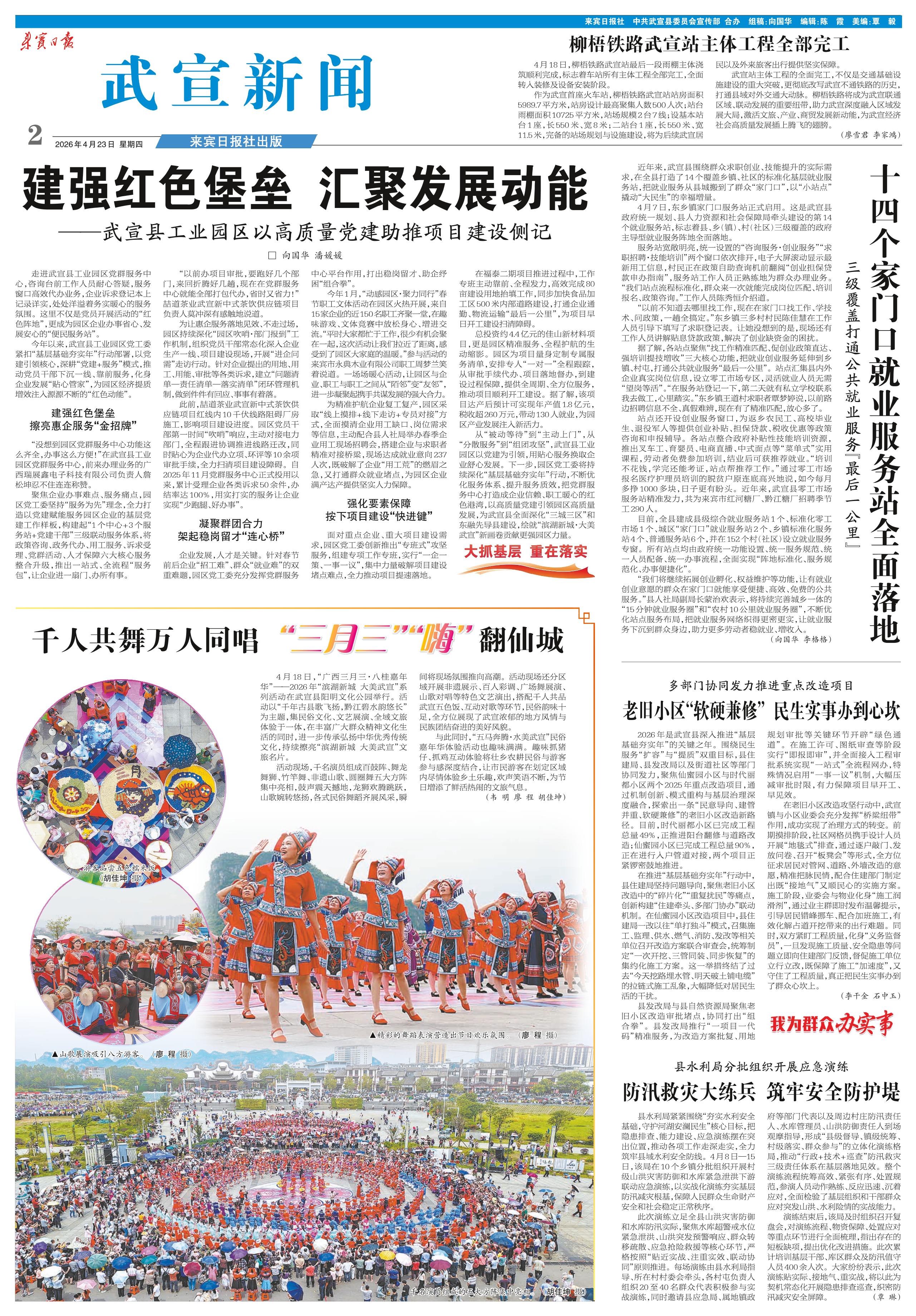 <div style='font-size: 22px!important;line-height: 34px!important;text-align: justify!important;color: #000!important'>千人共舞万人同唱 “三月三”“嗨” 翻仙城</div><div style='font-size: 14px!important;line-height: 22px!important;text-align: left!important;color: #777!important;margin-top: 20px;'>来宾日报  2026-04-23</div><div><img id='paperImg' style='max-width: 100%;height: auto' src='//img.founderfx.cn/epaper/202604/23/7b13819c4df048c0a7cda544f8df4325/2.jpg' alt='' class='page-img'/></div><div style='font-size: 14px!important;line-height: 22px!important;text-align: center!important;color: #777!important;'><img src='//img.founderfx.cn/epaper/202604/23/7b13819c4df048c0a7cda544f8df4325/02/104177-【2版】千人共舞万人同唱 “三月三”“嗨”翻仙城—图片104166_s.jpg'style='display: block!important;margin: auto!important;max-width: 100%!important;'/> 千名演员组成的五大方阵集中亮相。 (胡佳坤 摄)<img src='//img.founderfx.cn/epaper/202604/23/7b13819c4df048c0a7cda544f8df4325/02/104188-【2版】千人共舞万人同唱 “三月三”“嗨”翻仙城—图片104169_s.jpg'style='display: block!important;margin: auto!important;max-width: 100%!important;'/> 精彩的舞蹈表演营造出节日欢乐氛围。 (廖 程 摄)<img src='//img.founderfx.cn/epaper/202604/23/7b13819c4df048c0a7cda544f8df4325/02/104176-【2版】千人共舞万人同唱 “三月三”“嗨”翻仙城—图片104173_s.jpg'style='display: block!important;margin: auto!important;max-width: 100%!important;'/> 游客品尝五色糯米饭。 (胡佳坤 摄)<img src='//img.founderfx.cn/epaper/202604/23/7b13819c4df048c0a7cda544f8df4325/02/104179-【2版】千人共舞万人同唱 “三月三”“嗨”翻仙城—图片104170_s.jpg'style='display: block!important;margin: auto!important;max-width: 100%!important;'/> 山歌展演吸引八方游客。 (廖 程 摄)</div><p> 4月18日,“广西三月三·八桂嘉年华”——2026年“滨湖新城 大美武宣”系列活动在武宣县阳明文化公园举行。活动以“千年古县歌飞扬,黔江碧水韵悠长”为主题,集民俗文化、文艺展演、全域文旅体验于一体,在丰富广大群众精神文化生活的同时,进一步传承弘扬中华优秀传统文化,持续擦亮“滨湖新城 大美武宣”文旅名片。</p><p> 活动现场,千名演员组成百鼓阵、舞龙舞狮、竹竿舞、非遗山歌、圆圈舞五大方阵集中亮相,鼓声震天撼地,龙狮欢腾跳跃,山歌婉转悠扬,各式民俗舞蹈齐展风采,瞬间将现场氛围推向高潮。活动现场还分区域开展非遗展示、百人彩调、广场舞展演、山歌对唱等特色文艺演出,搭配千人共品武宣五色饭、互动对歌等环节,民俗韵味十足,全方位展现了武宣浓郁的地方风情与民族团结奋进的美好风貌。</p><p> 与此同时,“五马奔腾·水美武宣”民俗嘉年华体验活动也趣味满满。趣味抓猪仔、抓鸡互动体验将壮乡农耕民俗与游客参与感深度结合,让市民游客在划定区域内尽情体验乡土乐趣,欢声笑语不断,为节日增添了鲜活热闹的文旅气息。</p><p> (韦 明 廖 程 胡佳坤)</p>