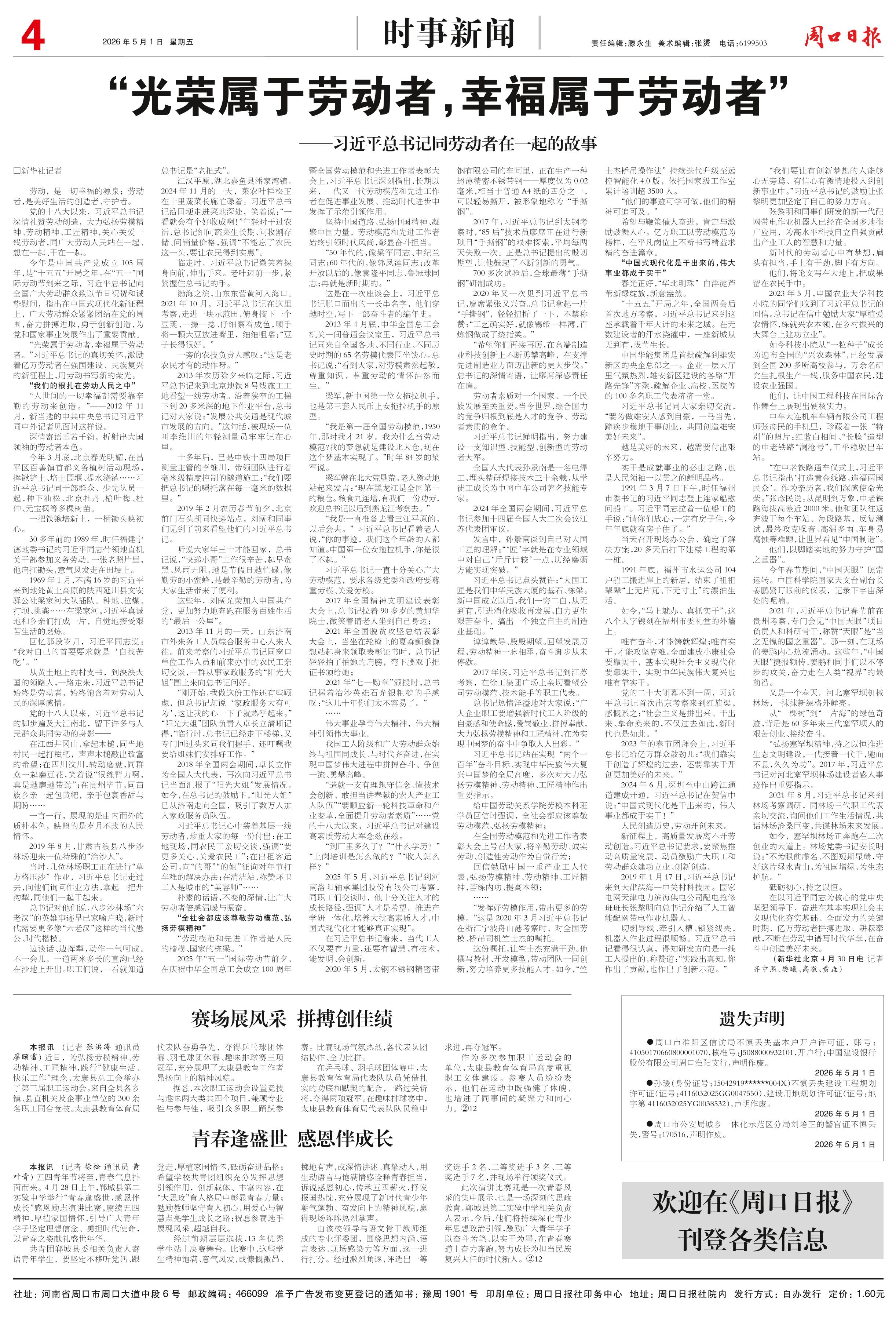 <div style='font-size: 22px!important;line-height: 34px!important;text-align: justify!important;color: #000!important'>青春逢盛世 感恩伴成长</div><div style='font-size: 14px!important;line-height: 22px!important;text-align: left!important;color: #777!important;margin-top: 20px;'>周口日报  2026-05-01</div><div><img id='paperImg' style='max-width: 100%;height: auto' src='//img.founderfx.cn/epaper/202605/01/4524f84565414f5b89a66754852bc6a1/4.jpg' alt='' class='page-img'/></div><p> 本报讯 (记者 徐松 通讯员 黄叶青) 五四青年节将至,青春气息扑面而来。4月28日上午,郸城县第二实验中学举行“青春逢盛世,感恩伴成长”感恩励志演讲比赛,赓续五四精神,厚植家国情怀,引导广大青年学子坚定理想信念、勇担时代使命,以青春之姿献礼盛世年华。</p><p> 共青团郸城县委相关负责人寄语青年学生,要坚定不移听党话、跟党走,厚植家国情怀,砥砺奋进品格;希望学校共青团组织充分发挥思想引领作用,创新载体、丰富内容,在“大思政”育人格局中彰显青春力量;勉励教师坚守育人初心,用爱心与智慧点亮学生成长之路;祝愿参赛选手展现风采、超越自我。</p><p> 经过前期层层选拔,13名优秀学生站上决赛舞台。比赛中,这些学生精神饱满、意气风发,或慷慨激昂、掷地有声,或深情讲述、真挚动人,用生动语言与饱满情感诠释青春担当,诉说感恩初心,传承五四薪火,抒发报国热忱,充分展现了新时代青少年朝气蓬勃、奋发向上的精神风貌,赢得现场阵阵热烈掌声。</p><p> 由该校领导与语文骨干教师组成的专业评委团,围绕思想内涵、语言表达、现场感染力等方面,逐一进行打分。经过激烈角逐,评选出一等奖选手2名、二等奖选手3名、三等奖选手7名,并现场举行颁奖仪式。</p><p> 此次演讲比赛既是一次青春风采的集中展示,也是一场深刻的思政教育。郸城县第二实验中学相关负责人表示,今后,他们将持续深化青少年思想政治引领,激励广大青年学子以奋斗为笔、以实干为墨,在青春赛道上奋力奔跑,努力成长为担当民族复兴大任的时代新人。②12</p>
