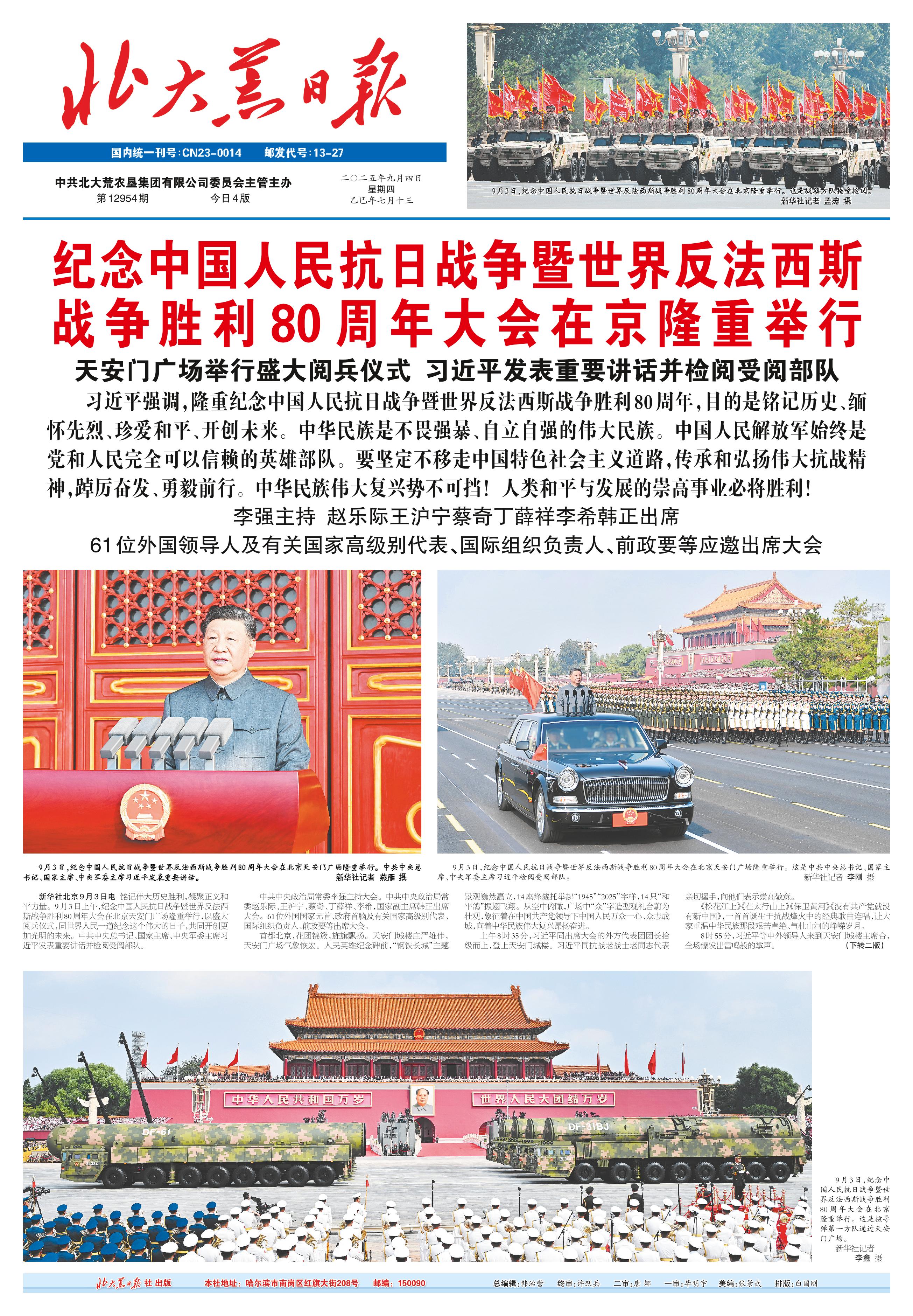 <div style='font-size: 22px!important;line-height: 34px!important;text-align: justify!important;color: #000!important'>2025年9月4日北大荒日报-文章</div><div style='font-size: 14px!important;line-height: 22px!important;text-align: left!important;color: #777!important;margin-top: 20px;'>北大荒日报  2025-09-04</div><div><img id='paperImg' style='max-width: 100%;height: auto' src='//img.founderfx.cn/epaper/202509/04/c12c0fb8943940ce9e545f956af05205/3.jpg' alt='' class='page-img'/></div><p> 总编辑:韩治营 终审:许跃兵 二审:唐 娜 一审:毕明宇 美编:张景武 排版:白国刚</p>