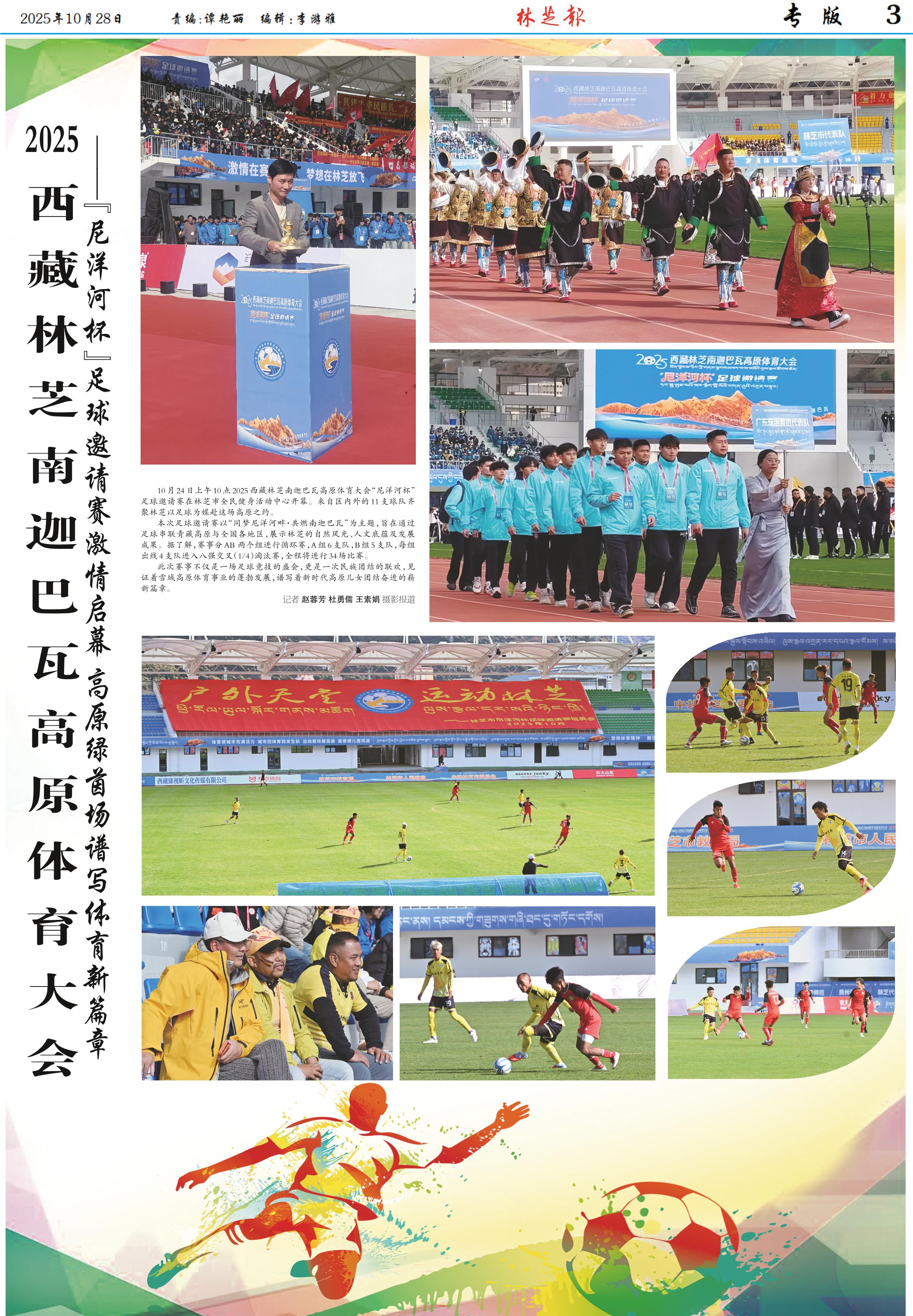 <div style='font-size: 22px!important;line-height: 34px!important;text-align: justify!important;color: #000!important'>2025西藏林芝南迦巴瓦高原体育大会</div><div style='font-size: 16px!important;line-height: 28px!important;text-align: justify;color: #777!important;margin-top: 20px;'>——“尼洋河杯”足球邀请赛激情启幕 高原绿茵场谱写体育新篇章</div><div style='font-size: 14px!important;line-height: 22px!important;text-align: left!important;color: #777!important;margin-top: 20px;'>林芝报-汉文版  2025-10-28</div><div><img id='paperImg' style='max-width: 100%;height: auto' src='//img.founderfx.cn/epaper/202510/28/6b6fb5c6cce64368ab39e1d5cc6578d0/3.jpg' alt='' class='page-img'/></div><div style='font-size: 14px!important;line-height: 22px!important;text-align: center!important;color: #777!important;'><img src='//img.founderfx.cn/epaper/202510/28/6b6fb5c6cce64368ab39e1d5cc6578d0/03/105115_tanyl_1761539830329_s.jpg'style='display: block!important;margin: auto!important;max-width: 100%!important;'/><img src='//img.founderfx.cn/epaper/202510/28/6b6fb5c6cce64368ab39e1d5cc6578d0/03/105114_tanyl_1761539830037_s.jpg'style='display: block!important;margin: auto!important;max-width: 100%!important;'/><img src='//img.founderfx.cn/epaper/202510/28/6b6fb5c6cce64368ab39e1d5cc6578d0/03/105113_tanyl_1761539829761_s.jpg'style='display: block!important;margin: auto!important;max-width: 100%!important;'/><img src='//img.founderfx.cn/epaper/202510/28/6b6fb5c6cce64368ab39e1d5cc6578d0/03/105107_tanyl_1761539828007_s.jpg'style='display: block!important;margin: auto!important;max-width: 100%!important;'/><img src='//img.founderfx.cn/epaper/202510/28/6b6fb5c6cce64368ab39e1d5cc6578d0/03/105131_tanyl_1761540009421_s.jpg'style='display: block!important;margin: auto!important;max-width: 100%!important;'/><img src='//img.founderfx.cn/epaper/202510/28/6b6fb5c6cce64368ab39e1d5cc6578d0/03/105109_tanyl_1761539828588_s.jpg'style='display: block!important;margin: auto!important;max-width: 100%!important;'/><img src='//img.founderfx.cn/epaper/202510/28/6b6fb5c6cce64368ab39e1d5cc6578d0/03/105110_tanyl_1761539828883_s.jpg'style='display: block!important;margin: auto!important;max-width: 100%!important;'/><img src='//img.founderfx.cn/epaper/202510/28/6b6fb5c6cce64368ab39e1d5cc6578d0/03/105108_tanyl_1761539828322_s.jpg'style='display: block!important;margin: auto!important;max-width: 100%!important;'/><img src='//img.founderfx.cn/epaper/202510/28/6b6fb5c6cce64368ab39e1d5cc6578d0/03/105105_tanyl_1761539827459_s.jpg'style='display: block!important;margin: auto!important;max-width: 100%!important;'/></div><p>10月24日上午10点2025西藏林芝南迦巴瓦高原体育大会“尼洋河杯”足球邀请赛在林芝市全民健身活动中心开幕。来自区内外的11支球队齐聚林芝以足球为媒赴这场高原之约。</p><p>本次足球邀请赛以“同梦尼洋河畔·共燃南迦巴瓦”为主题,旨在通过足球串联青藏高原与全国各地区,展示林芝的自然风光、人文底蕴及发展成果。据了解,赛事分AB 两个组进行循环赛,A组6支队,B组5支队,每组出线4支队进入八强交叉(1/4)淘汰赛,全程将进行34场比赛。</p><p>此次赛事不仅是一场足球竞技的盛会,更是一次民族团结的联欢,见证着雪域高原体育事业的蓬勃发展,谱写着新时代高原儿女团结奋进的崭新篇章。</p><p>记者 赵蓉芳 杜勇儒 王素娟 摄影报道</p>