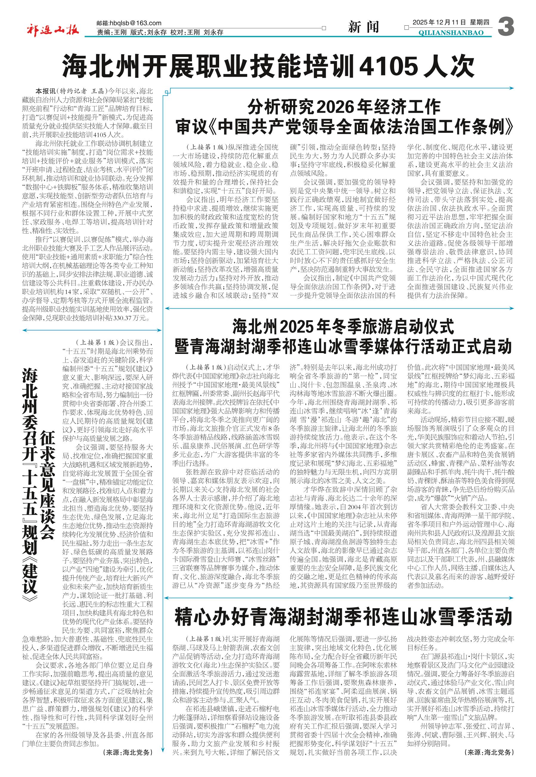 <div style='font-size: 22px!important;line-height: 34px!important;text-align: justify!important;color: #000!important'>海北州2025年冬季旅游启动仪式 暨青海湖封湖季祁连山冰雪季媒体行活动正式启动</div><div style='font-size: 14px!important;line-height: 22px!important;text-align: left!important;color: #777!important;margin-top: 20px;'>祁连山报  2025-12-11</div><div><img id='paperImg' style='max-width: 100%;height: auto' src='//img.founderfx.cn/epaper/202512/10/eb9e4e3856794c758b08b267462cfe13/3.jpg' alt='' class='page-img'/></div><p> (上接第1版)启动仪式上,才华烨代表《中国国家地理》杂志社向海北州授予“中国国家地理·最美风景线”红框牌匾,州委常委、副州长赵海平代表海北州接牌。此次授牌旨在依托《中国国家地理》强大品牌影响力和传播平台,将海北冬季之美推向更广阔的市场。海北文旅推介官正式发布8条冬季旅游精品线路,线路涵盖冰雪娱乐、温泉康养、民俗展演、红色研学等多元业态,为广大游客提供丰富的冬季出行选择。</p><p> 张胜源在致辞中对莅临活动的领导、嘉宾和媒体朋友表示欢迎,向长期以来关心支持海北发展的社会各界人士表示感谢,并介绍了海北地理环境和文化资源优势。他说,近年来,海北州立足“打造国际生态旅游目的地”全力打造环青海湖游牧文化生态保护实验区,充分发挥祁连山、青海湖生态本底优势,把“冰雪+”作为冬季旅游的主基调,以祁连山岗什卡国际滑雪登山大师赛、“冰雪丝路”三省联赛等品牌赛事为媒介,推动体育、文化、旅游深度融合,海北冬季旅游已从“冷资源”逐步变身为“热经济”。特别是去年以来,海北州成功打响全省冬季旅游的“第一枪”,同宝山、岗什卡、包忽图温泉、圣泉湾、冰沟林海等地冰雪旅游不断火爆出圈。今年,海北州围绕青海湖封湖季、祁连山冰雪季,继续唱响“冰‘逢’青海湖 雪‘漫’祁连山 冬游‘趣’海北”的冬季旅游主旋律,让海北州的冬季旅游持续绽放活力。他表示,在这个冬季,海北州将与《中国国家地理》杂志社等多家省内外媒体共同携手,多维度记录和展现“梦幻海北、五彩福地”的独特魅力与无限生机,向四方宾朋展示海北的冰雪之美、人文之美。</p><p> 才华烨在致辞中深情回顾了杂志社与青海、海北长达二十余年的深厚情缘。她表示,自2004年首次到访以来,《中国国家地理》杂志社从未停止对这片土地的关注与记录,从青海湖当选“中国最美湖泊”,到持续报道原子城、青海湖湟鱼洄游等独特生态人文故事,海北的影像早已通过杂志传遍全国。她强调,海北是青藏高原重要的生态安全屏障,是多民族文化的交融之地,更是红色精神的传承高地,其资源具有国家级乃至世界级的价值。此次将“中国国家地理·最美风景线”红框授牌给“梦幻海北、五彩福地”的海北,期待中国国家地理极具权威性与辨识度的红框打卡,能形成可持续的传播动力,吸引更多游客前来海北。</p><p> 活动现场,精彩节目应接不暇,暖场服饰秀展演吸引了众多观众的目光,华美民族服饰应和着动人节拍,引领大家共赏精彩绝伦的走秀盛宴。在唐卡展区、农畜产品和特色美食展销活动区,蜂蜜、青稞产品、菜籽油等农副臻品和手抓羊肉、牦牛肉干、牦牛酸奶、青稞饼、酥油茶等特色美食得到现场游客的青睐,争先恐后纷纷购买品尝,成为“爆款”“火销”产品。</p><p> 省人大常委会教科文卫委、中央和省垣媒体、青海两弹一星干部学院、省冬季项目和户外运动管理中心、海南州共和县人民政府以及湟源县文旅局相关负责同志,海北州四县相关领导干部,州直各部门、各单位主要负责同志以及干部职工代表,州、县融媒体中心工作人员,网络主播、自媒体达人代表以及慕名而来的游客、越野爱好者参加活动。</p>