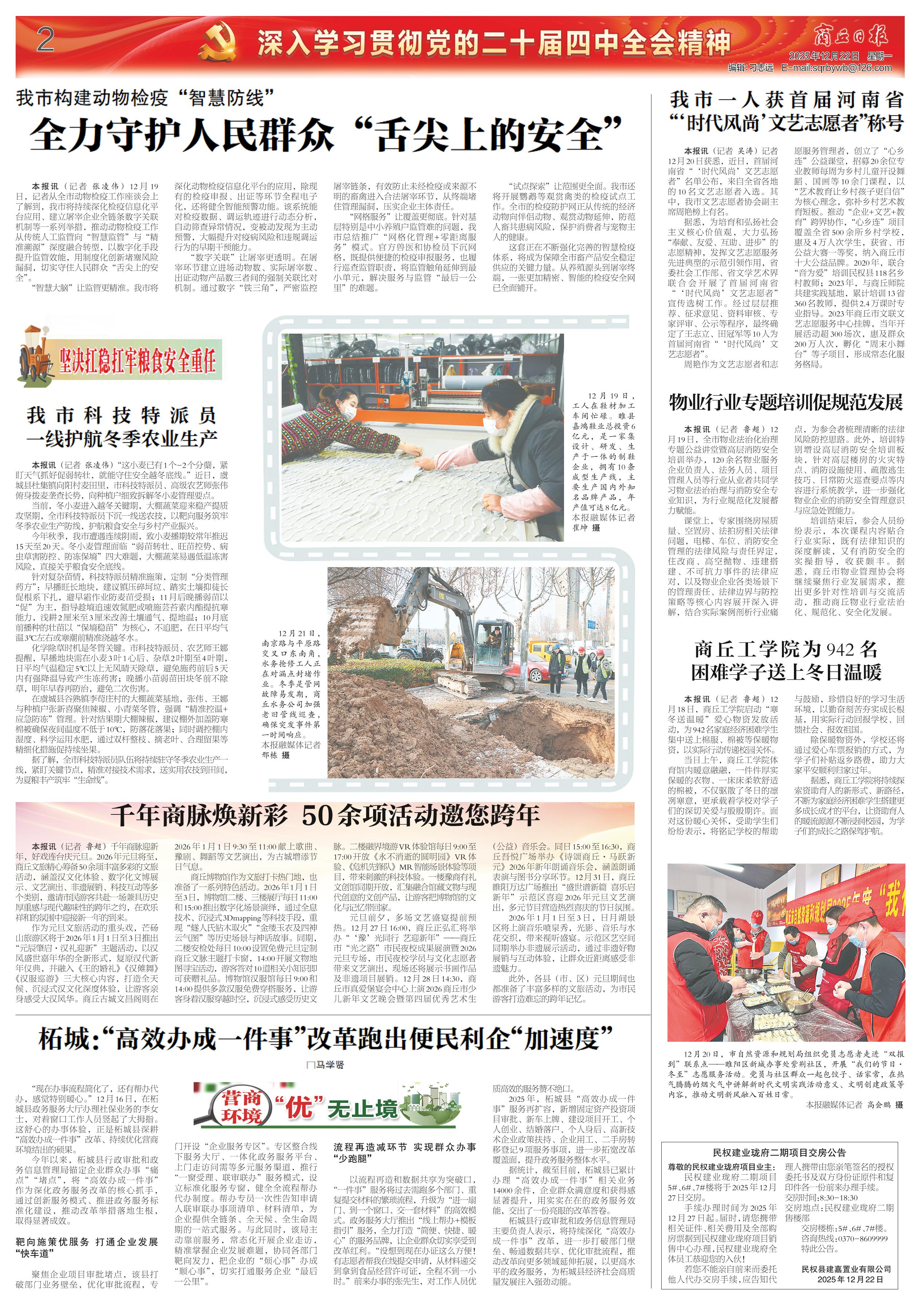 <div style='font-size: 22px!important;line-height: 34px!important;text-align: justify!important;color: #000!important'>千年商脉焕新彩 50余项活动邀您跨年</div><div style='font-size: 14px!important;line-height: 22px!important;text-align: left!important;color: #777!important;margin-top: 20px;'>商丘日报云阅读  记者 鲁超  2025-12-22</div><div><img id='paperImg' style='max-width: 100%;height: auto' src='//img.founderfx.cn/epaper/202512/22/634d7aef050a482b8b40cac406e318df/2.jpg' alt='' class='page-img'/></div><p> 千年商脉迎新年,好戏连台庆元旦。2026年元旦将至,商丘文旅精心筹备50余项丰富多彩的文旅活动,涵盖汉文化体验、数字化文博展示、文艺演出、非遗展销、科技互动等多个类别,邀请市民游客共赴一场兼具历史厚重感与现代趣味性的跨年之约,在欢乐祥和的氛围中迎接新一年的到来。</p><p> 作为元旦文旅活动的重头戏,芒砀山旅游区将于2026年1月1日至3日推出“元辰肇启·汉礼迎新”主题活动,以汉风盛世嘉年华的全新形式,复原汉代新年仪典,并融入《王的婚礼》《汉傩舞》《汉服巡游》三大核心内容,打造全天候、沉浸式汉文化深度体验,让游客亲身感受大汉风华。商丘古城文昌阁则在2026年1月1日9:30至11:00献上歌曲、豫剧、舞蹈等文艺演出,为古城增添节日气息。</p><p> 商丘博物馆作为文旅打卡热门地,也准备了一系列特色活动。2026年1月1日至3日,博物馆二楼、三楼展厅每日11:00和15:00推出数字化场景演绎,通过全息技术、沉浸式3Dmapping等科技手段,重现“燧人氏钻木取火”“金缕玉衣及四神云气图”等历史场景与神话故事。同期,二楼安检处每日10:00设置免费元旦定制商丘文脉主题打卡窗,14:00开展文物地图寻宝活动,游客答对10道相关小知识即可获赠礼品。博物馆汉服馆每日9:00和14:00提供多款汉服免费穿搭服务,让游客身着汉服穿越时空,沉浸式感受历史文脉。二楼融界境游VR体验馆每日9:00至17:00开放《永不消逝的圆明园》VR体验、《危机先锋队》MR智能场景体验等项目,带来刺激的科技体验。一楼豫商有礼文创馆同期开放,汇集融合馆藏文物与现代创意的文创产品,让游客把博物馆的文化与记忆带回家。</p><p> 元旦前夕,多场文艺盛宴提前预热。12月27日16:00,商丘正弘汇将举办“‘豫’光同行 艺迎新年”——商丘市“光之路”市民夜校成果展演暨2026元旦专场,市民夜校学员与文化志愿者带来文艺演出,现场还将展示书画作品及非遗项目展销。12月28日14:30,商丘市真爱堡宴会中心上演2026商丘市少儿新年文艺晚会暨第四届优秀艺术生(公益)音乐会。同日15:00至16:30,商丘吾悦广场举办《诗颂商丘·马跃新元》2026年新年朗诵音乐会,涵盖朗诵表演与图书分享环节。12月31日,商丘睢阳万达广场推出“盛世谱新篇 喜乐启新年”示范区喜迎2026年元旦文艺演出,多元节目营造热烈喜庆的节日氛围。</p><p> 2026年1月1日至3日,日月湖景区将上演音乐喷泉秀,光影、音乐与水花交织,带来视听盛宴。示范区艺空间同期举办非遗展示活动,通过非遗好物展销与互动体验,让群众近距离感受非遗魅力。</p><p> 此外,各县(市、区)元旦期间也都准备了丰富多样的文旅活动,为市民游客打造难忘的跨年记忆。</p>